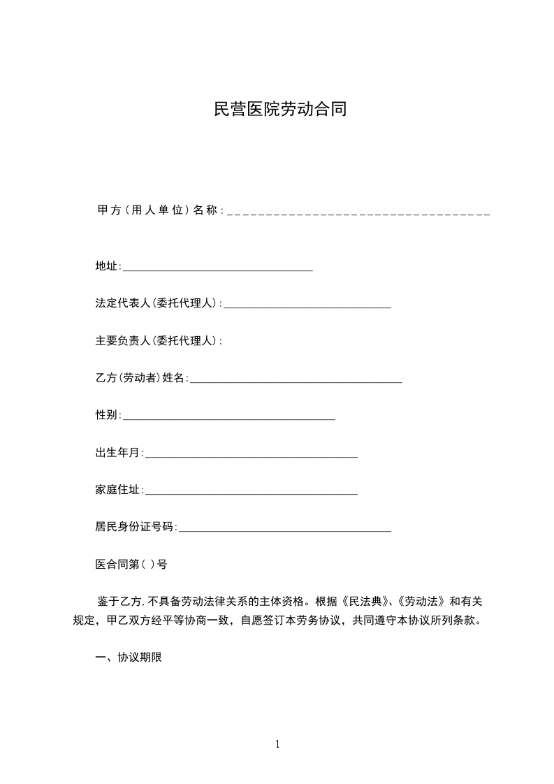 医合同第( )号