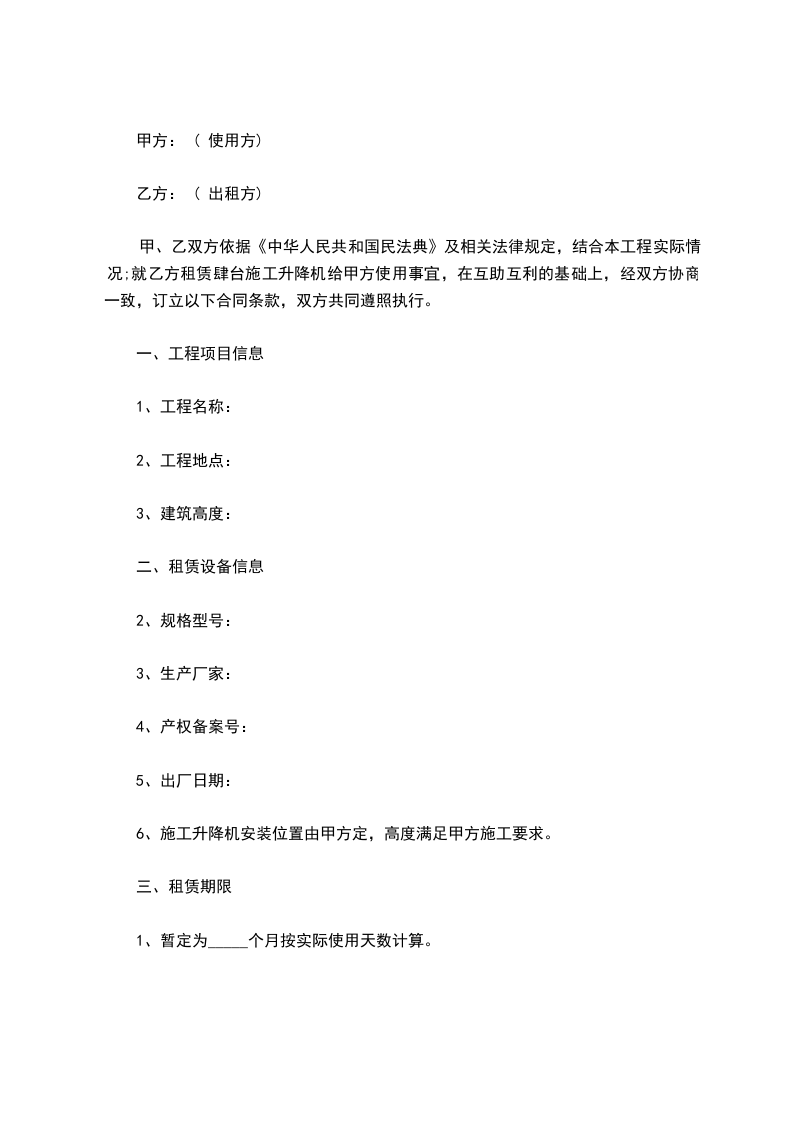 3、进场施工升降机设备及附件、工具的所有权属乙方、未征得乙方同意,甲方不得指派任何人员动用、操作该设备,否则,甲方将承担相关责任。