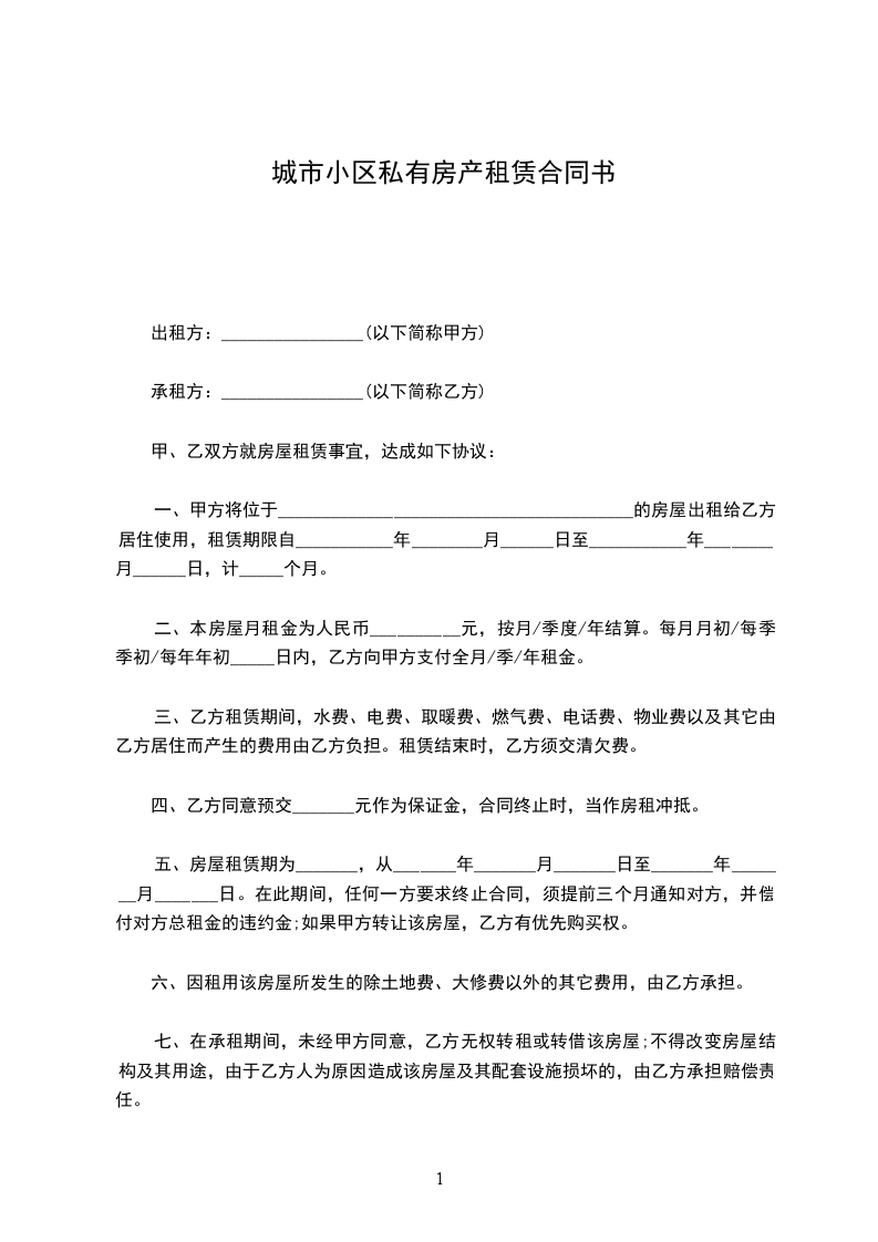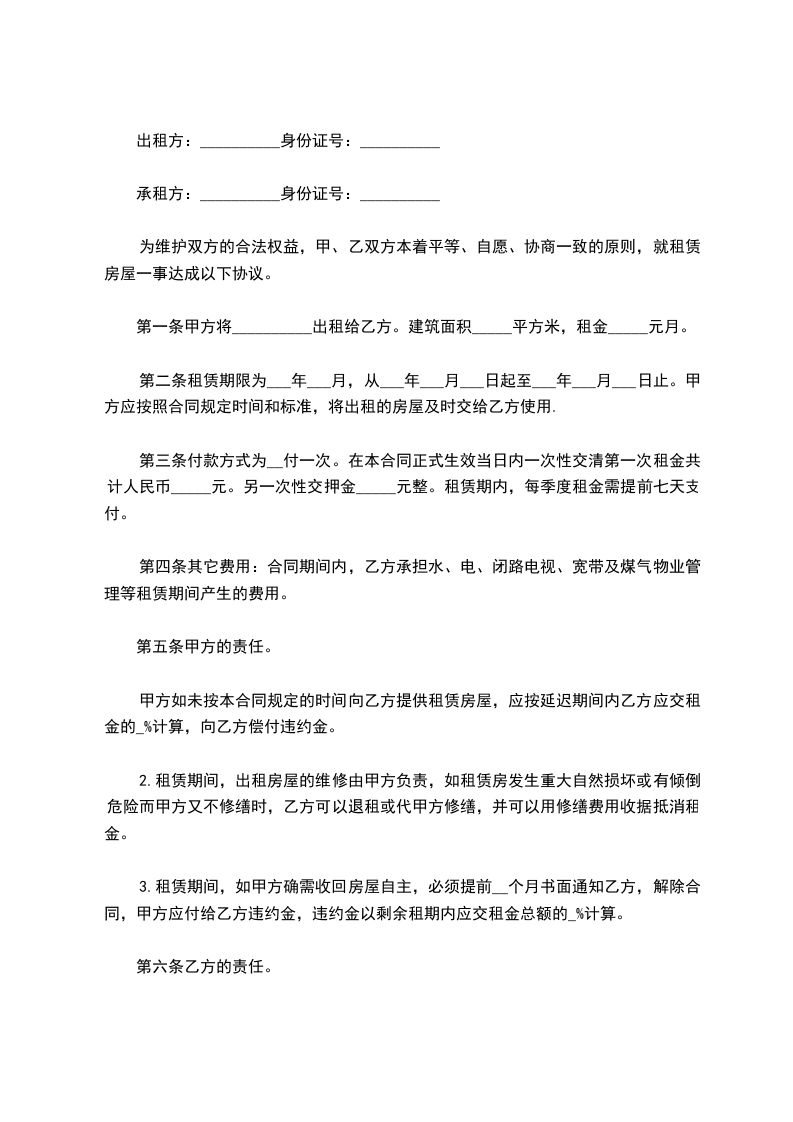 一.租期暂定 年.即从 年 月 日至 年 月 日止,租期内房租每月人民币 元整,年租金: 由乙方按年一次付给甲方.