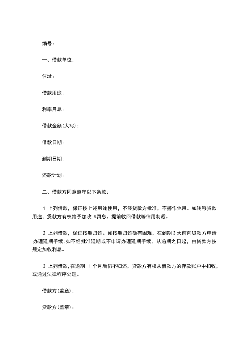 1.上列借款,保证按上述用途使用,不经贷款方批准,不挪作他用。如转移贷款用途,贷款方有权给予加收 %罚息、提前收回借款等信用制裁。