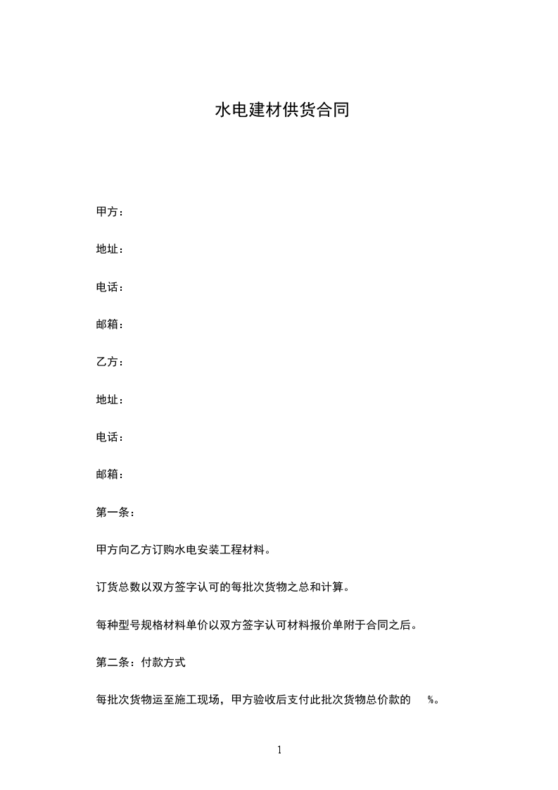 甲方向乙方订购水电安装工程材料。