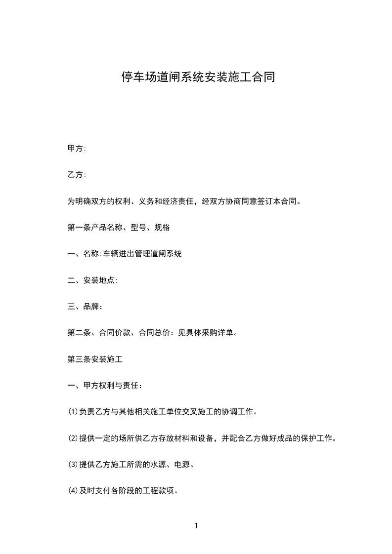 第五条合同价款的支付合同签订后,安装调试完成,通过甲方验收将以转账的方式给予乙方所需道闸款项。