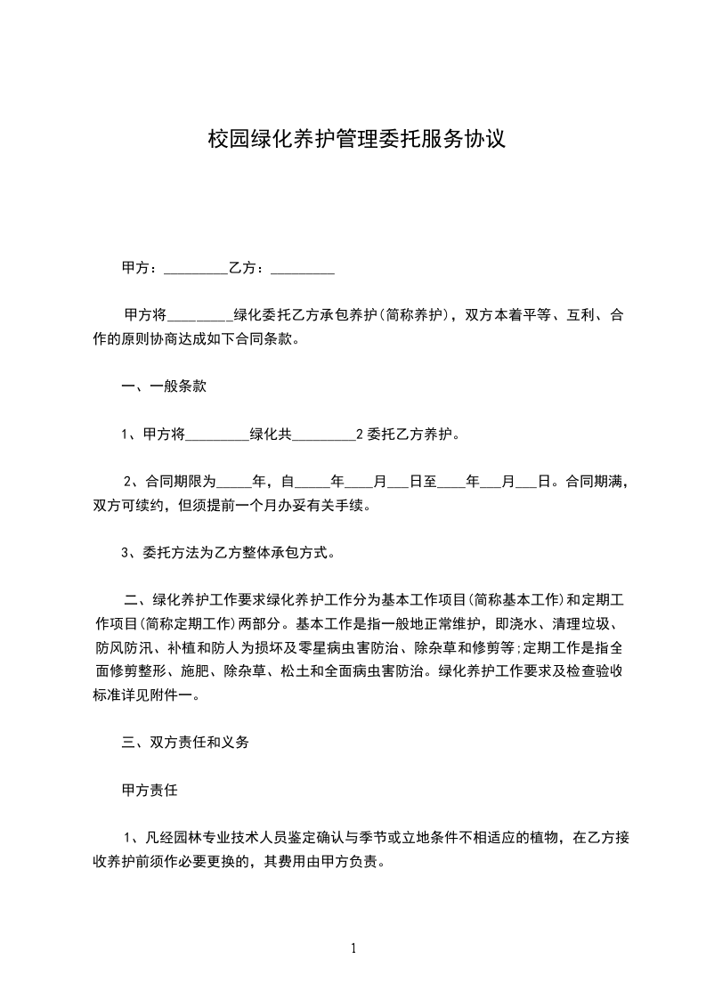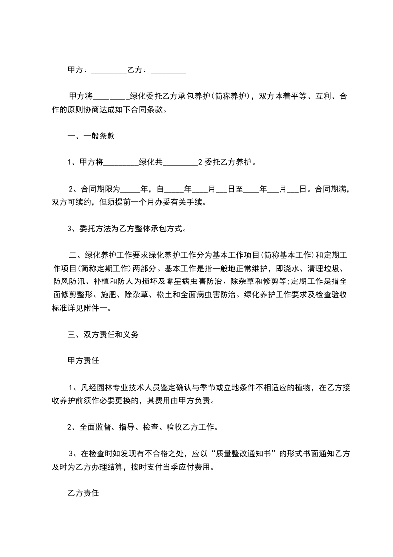 甲方将_________绿化委托乙方承包养护(简称养护),双方本着平等、互利、合作的原则协商达成如下合同条款。