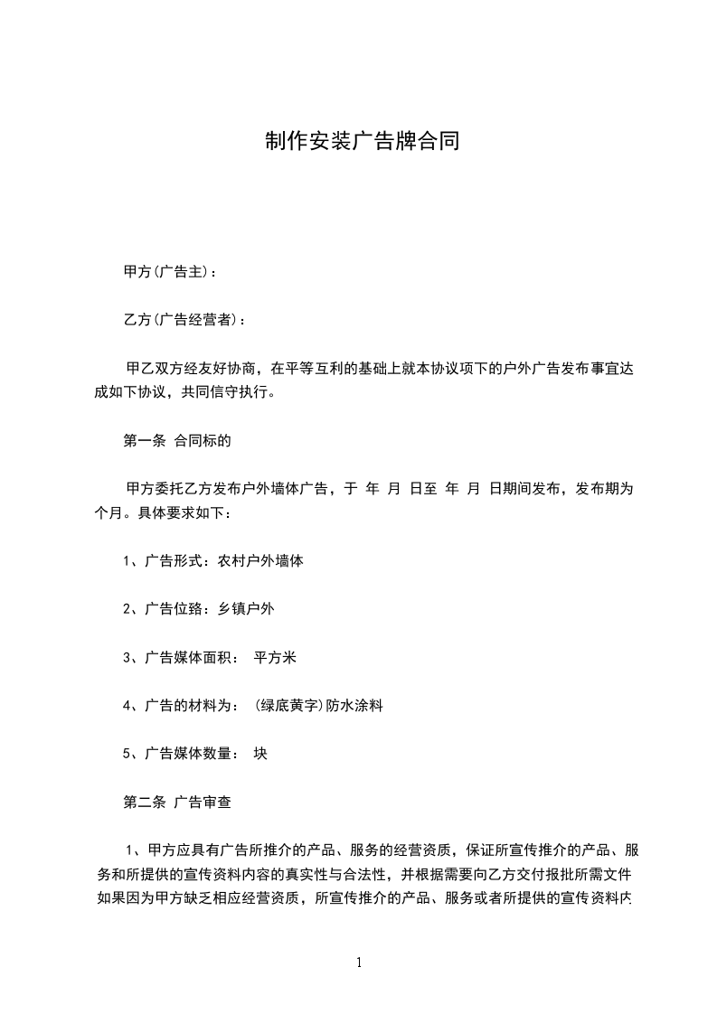甲方委托乙方发布户外墙体广告,于 年 月 日至 年 月 日期间发布,发布期为 个月。具体要求如下: