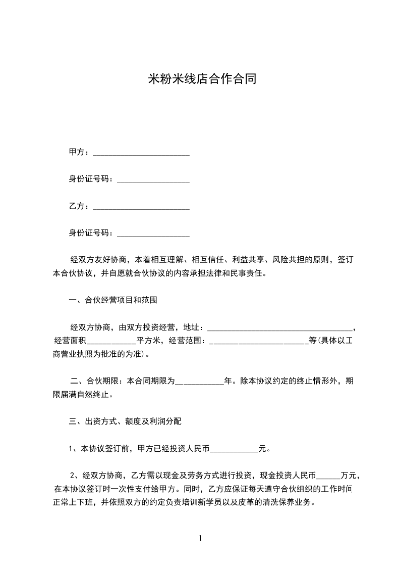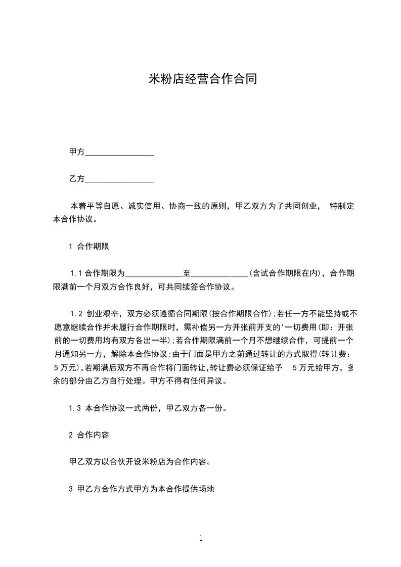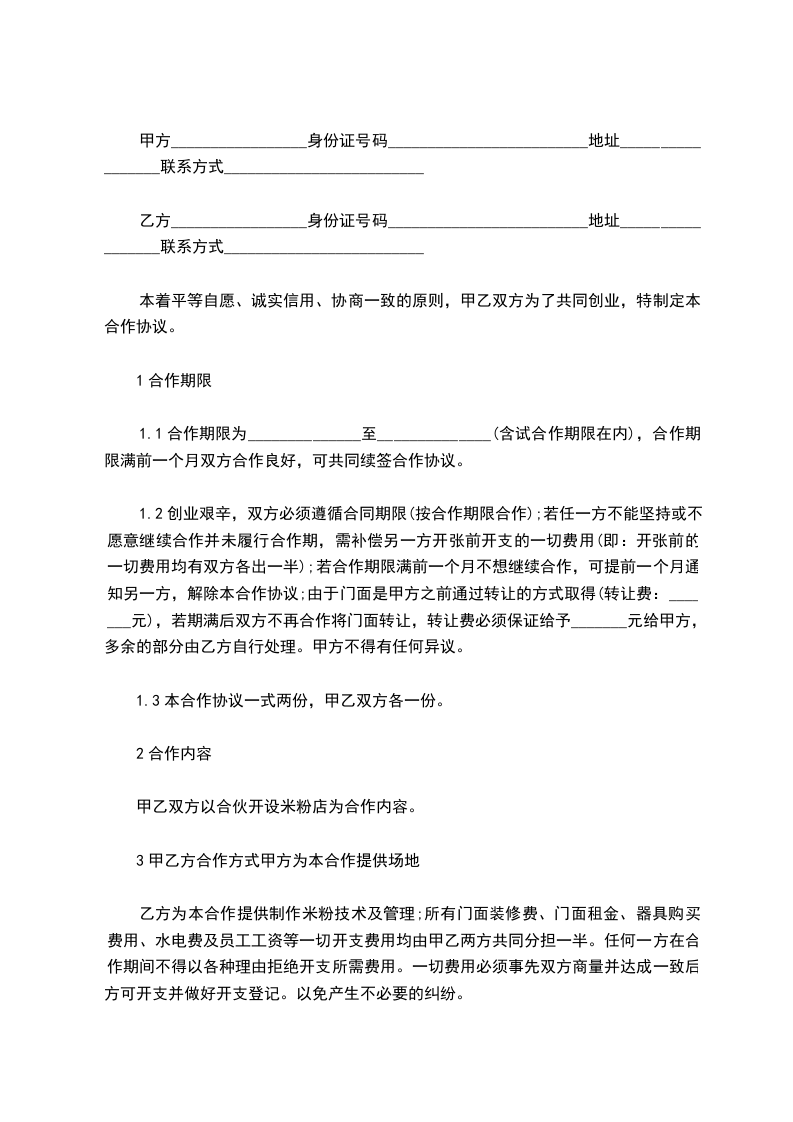 米粉店经营合作合同