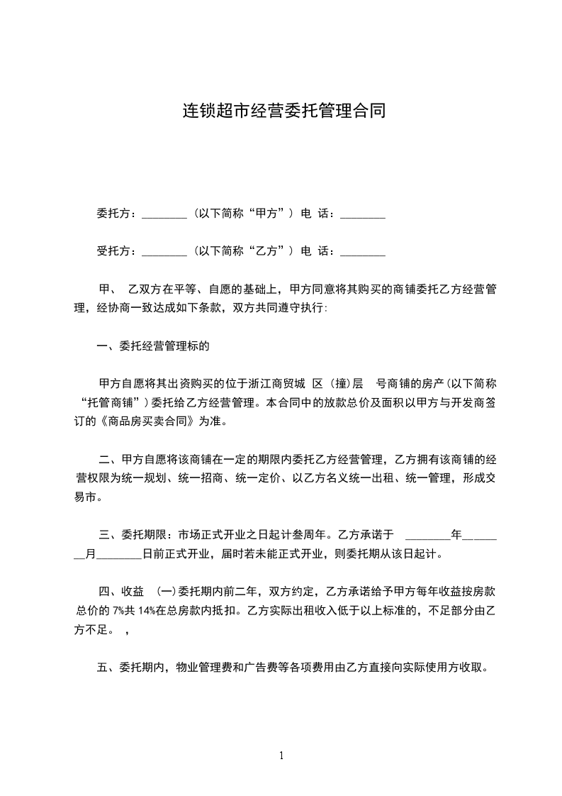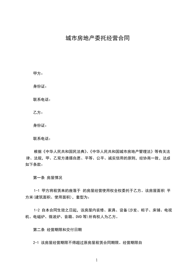 1-1 甲方将租赁来的座落于 的房屋经营使用权全权委托于乙方。该房屋面积 平方米(建筑面积、使用面积),套型为: