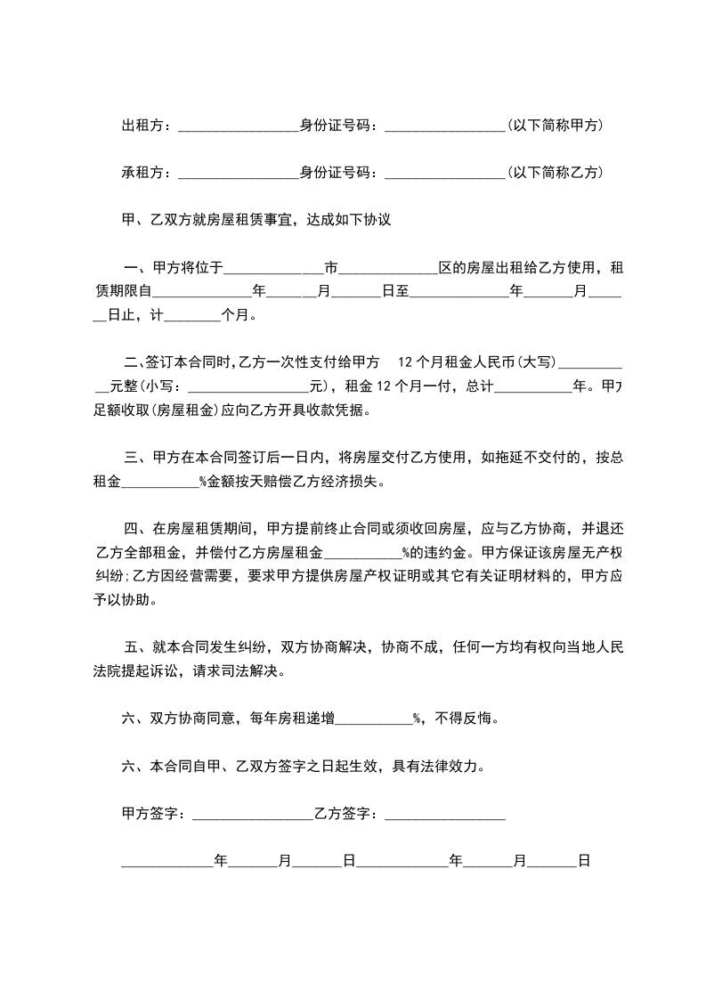 五、房屋租赁期为,从_____年_____月_____日至_____年_____月_____日。在此期间,任何一方要求终止合同,须提前三个月通知对方,并偿付对方总租金的违约金;如果甲方转让该房屋,乙方有优先购买权。