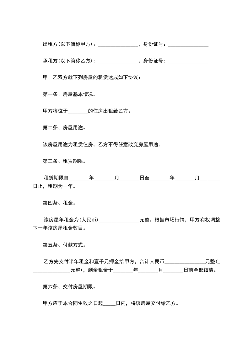 一、甲方将位于XX市XX街道XX小区X号楼XXXX号的房屋出租给乙方居住使用,租赁期限自XX年XX月XX日至XX年XX月XX日,计X个月。