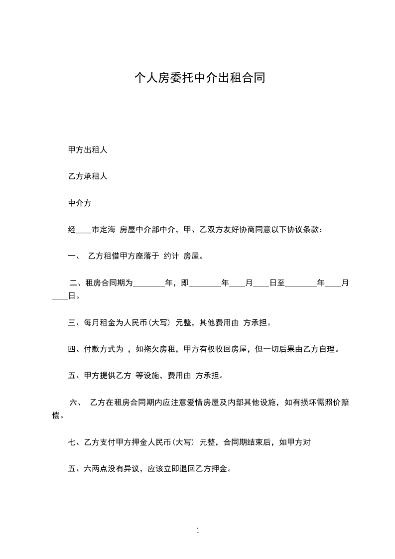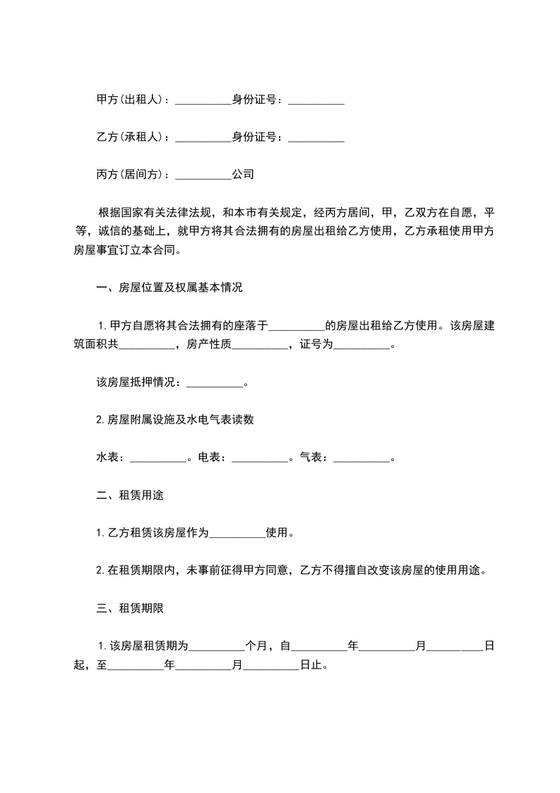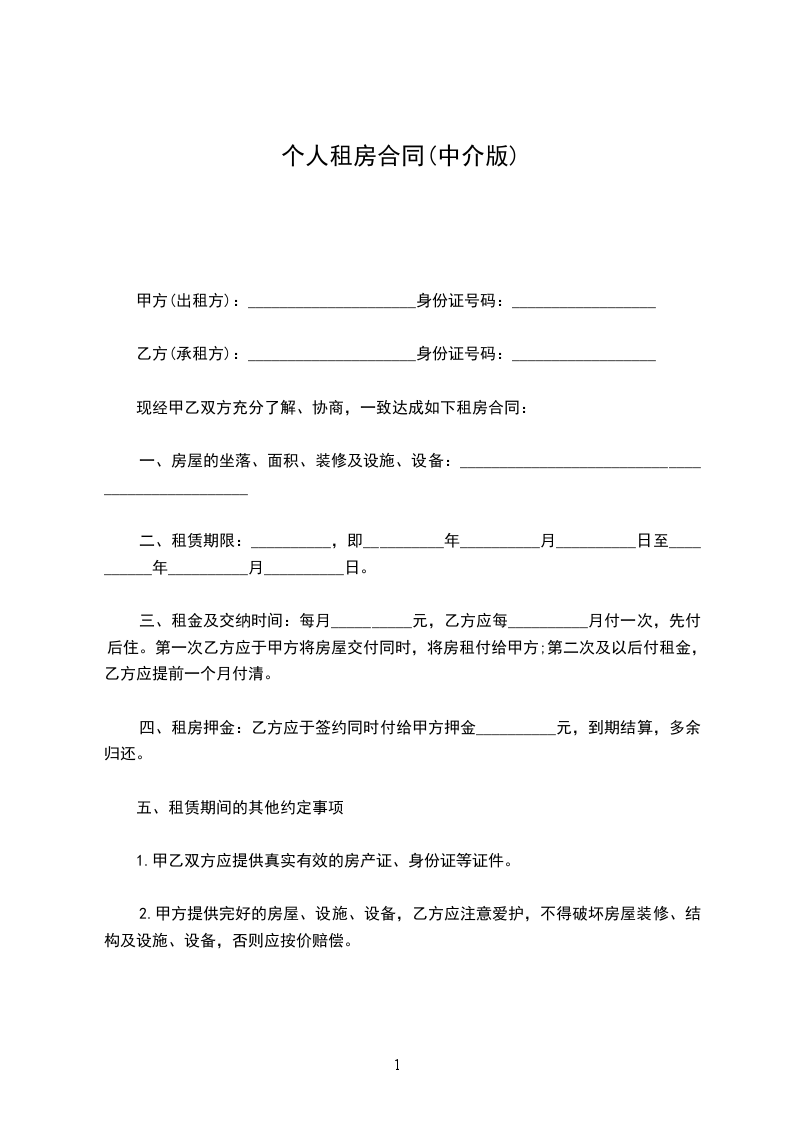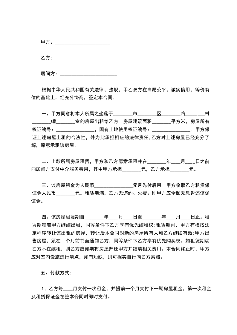 出租方(甲方):_____,男/女,身份证号码___________________________