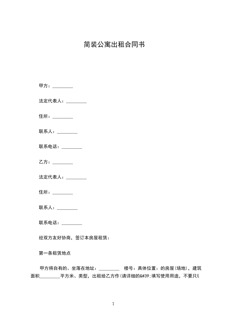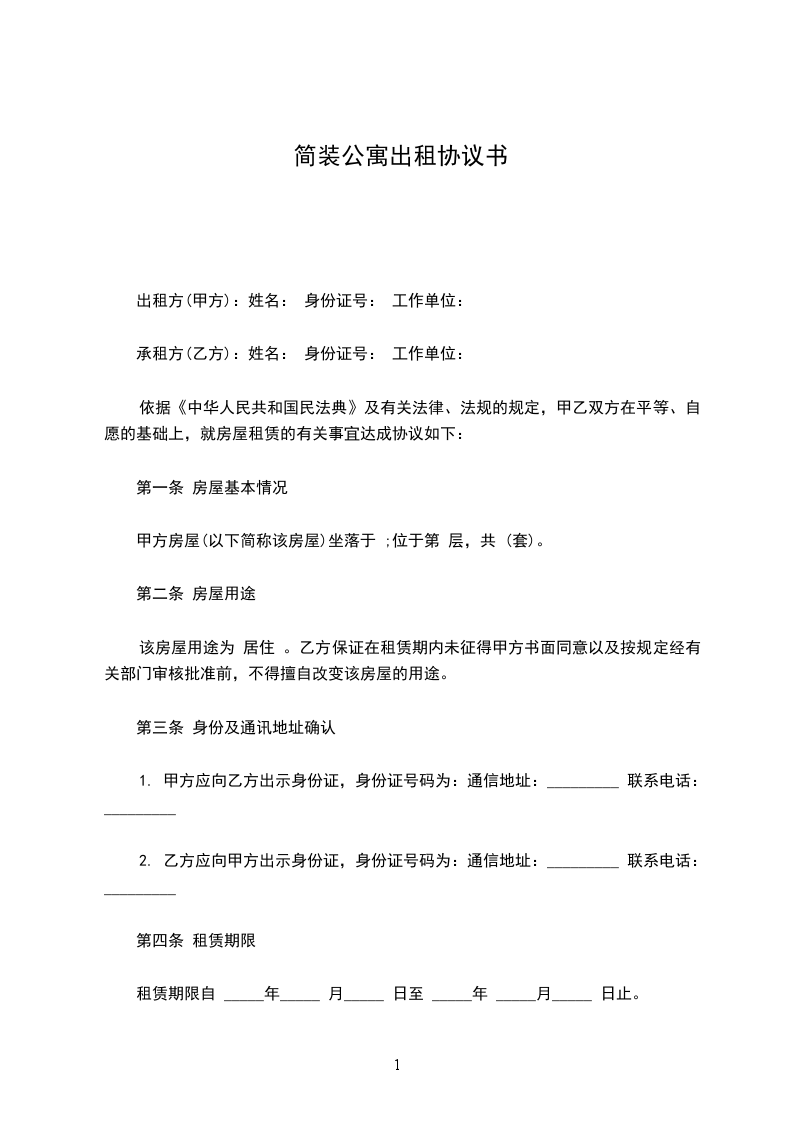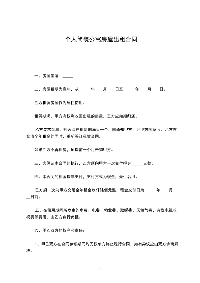 二、房屋租期为壹年,从______年____月____日至______年____月____日。