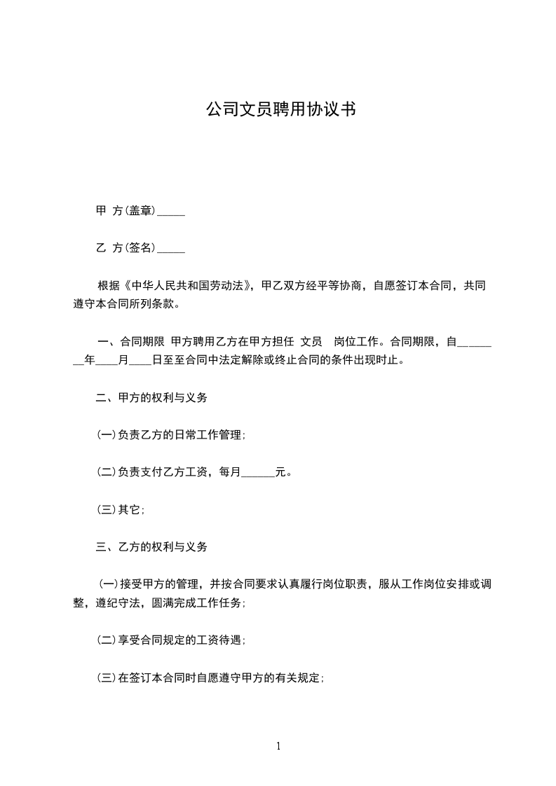 1、乙方同意根据甲方生产(工作)需要,从事工作,甲乙双方可另行约定_______岗位具体职责和要求。