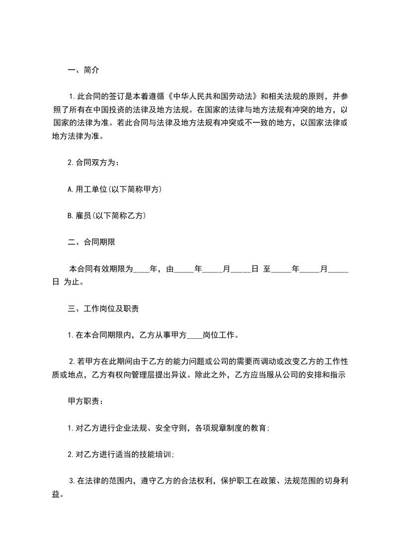 一、劳动合同期限