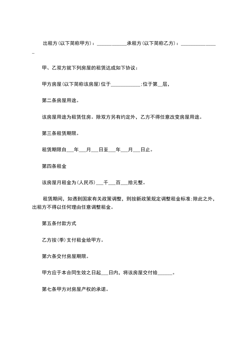 该房屋用途为租赁住房。除双方另有约定外,乙方不得任意改变房屋用途。