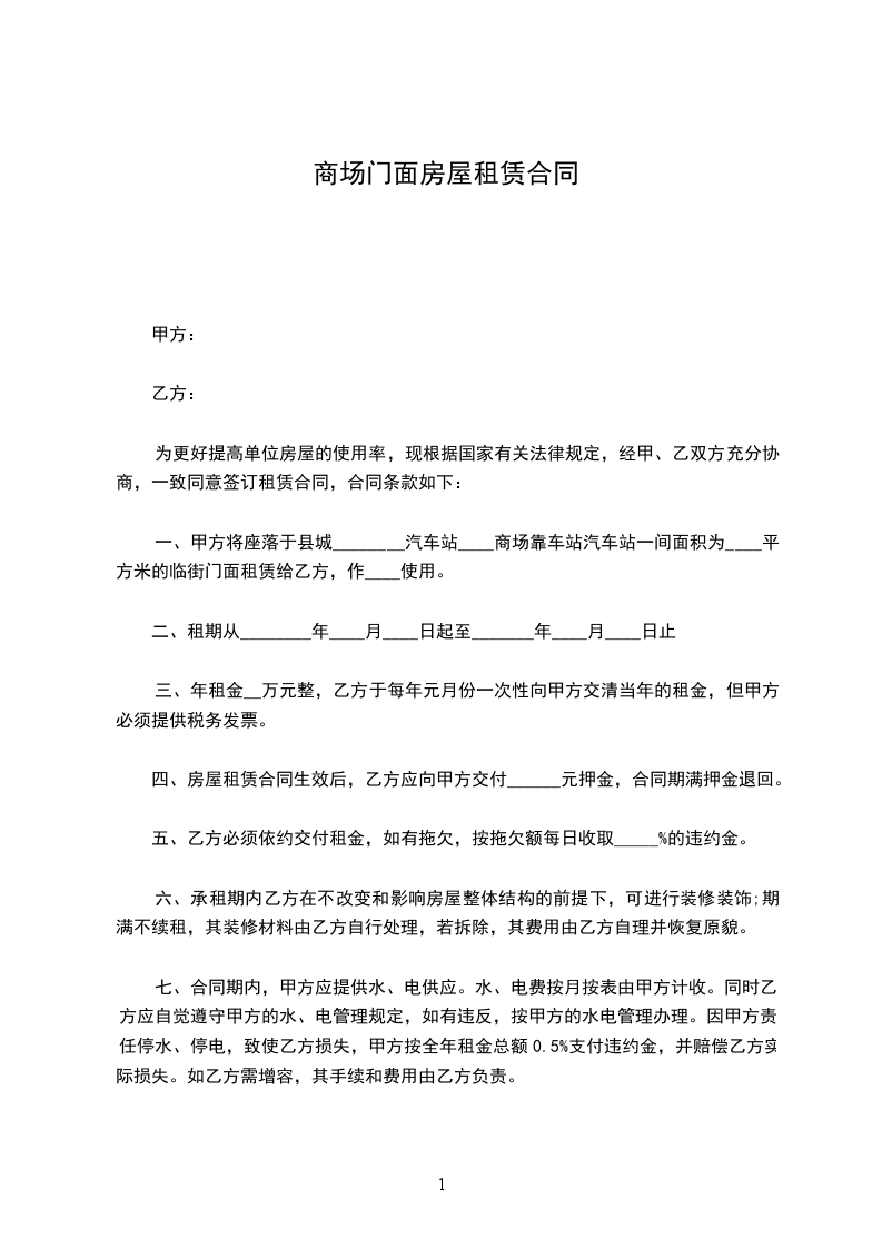 ______________公司将位于_______路____号___间门面承租给乙方经营,为规范甲乙双方的行为,经充分协商,达成如下门面出租协议: