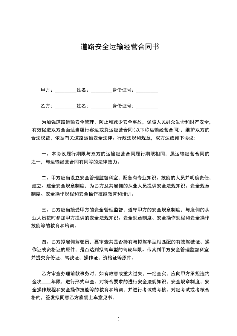 一、甲乙双方自愿购买以_________的名字挂靠在_________市_________县公路运输公司的__________________客车,共同经营、共担风险、共享收益。
