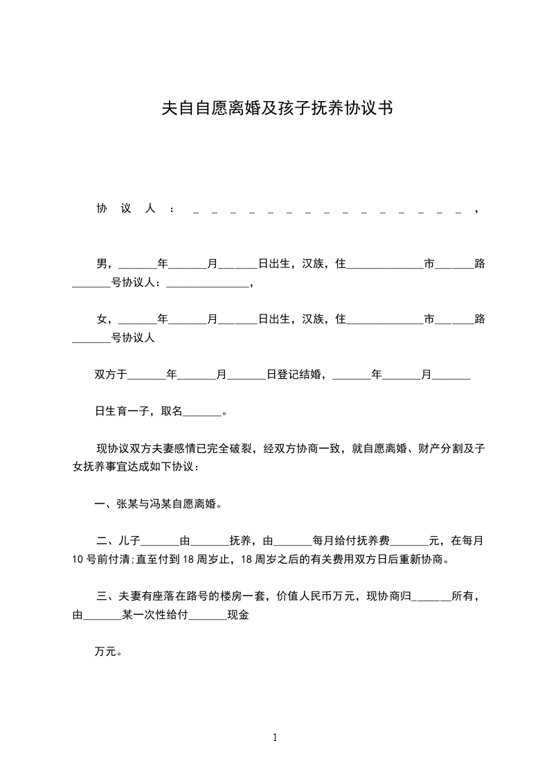 (本协议一式三份,当事人男女双方各执一份,交婚姻登记机关存档备案一份)