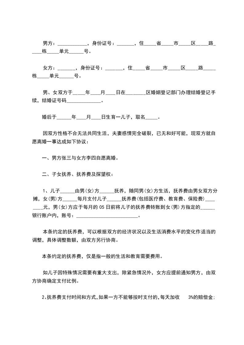 男方与女方现因夫妻感情彻底破裂自愿离婚,经男女双方商定,对有关事项达成以下协议: