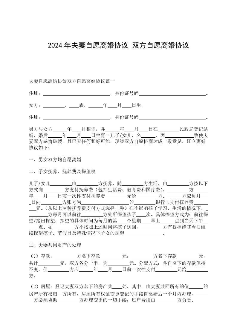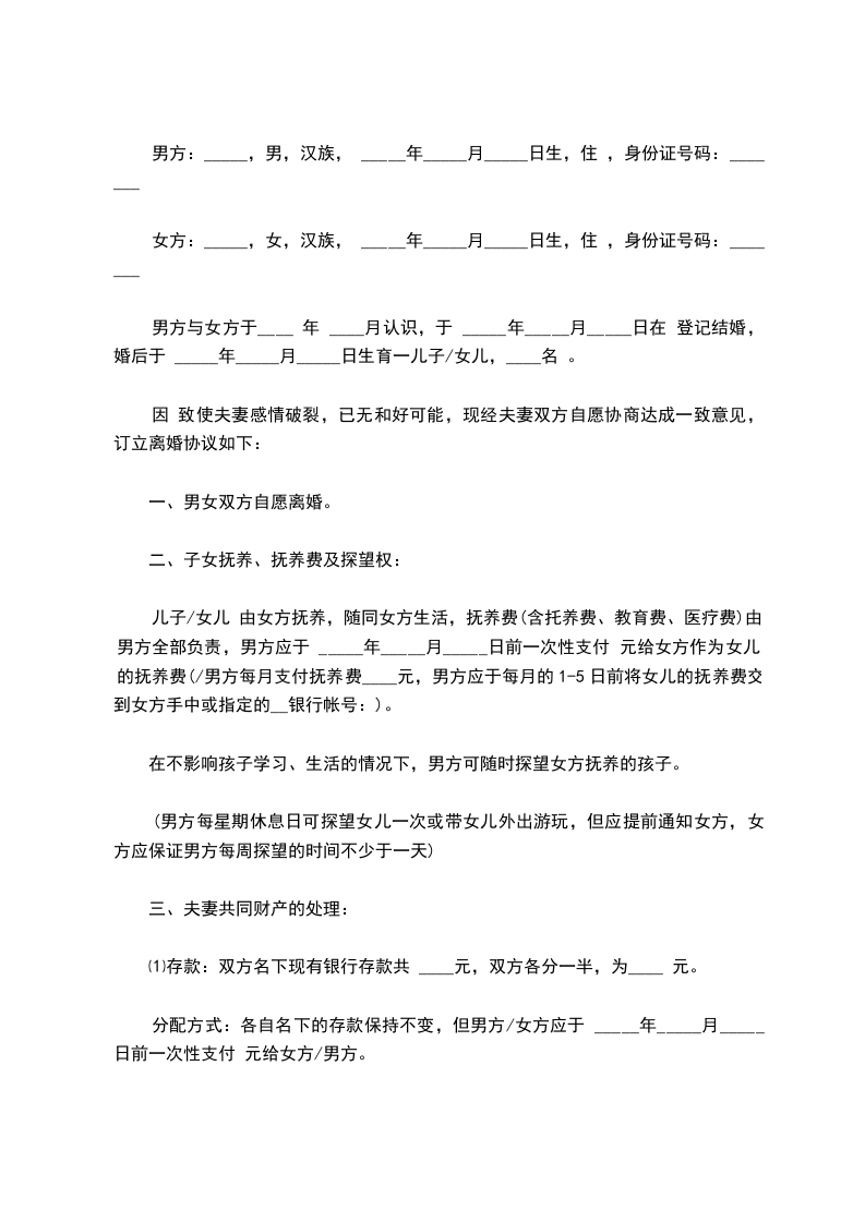 一、女儿/儿子_________现年_________岁,归_________方抚养。