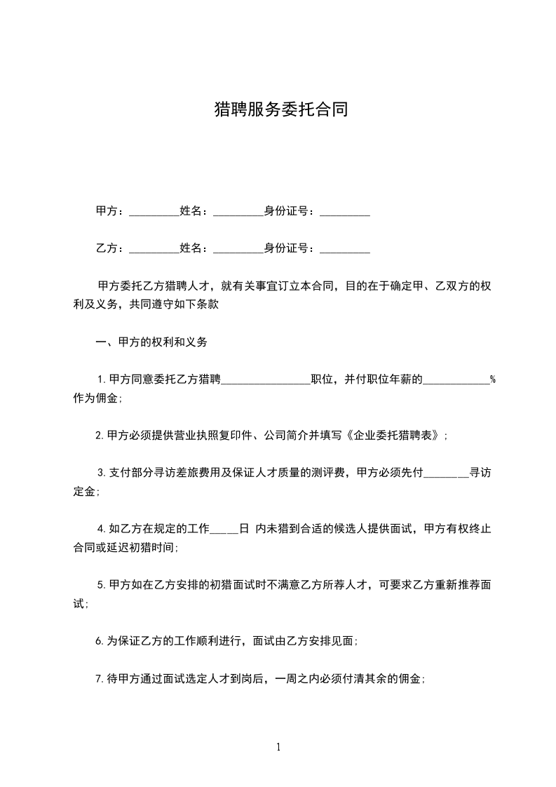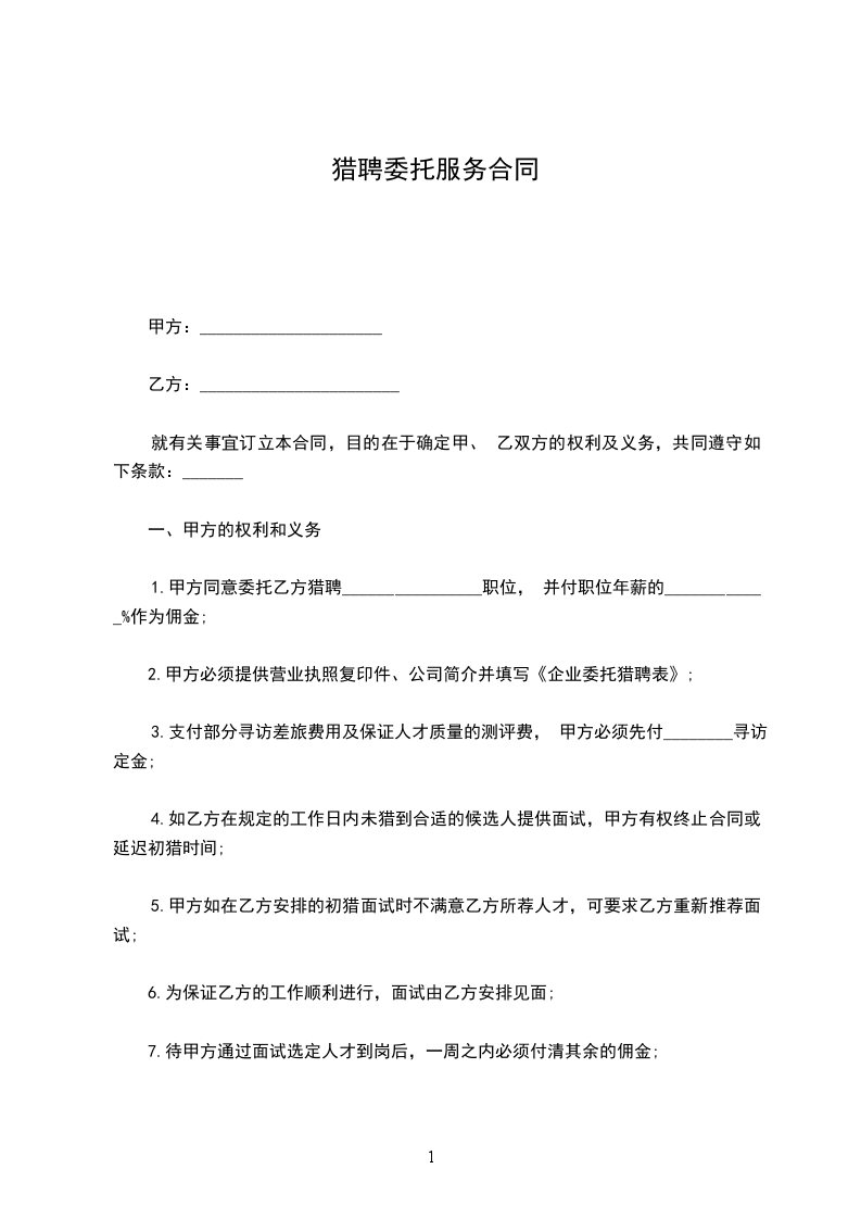 1、推荐的候选人被甲方录用,并最终到甲方工作,视为猎头服务成功。
