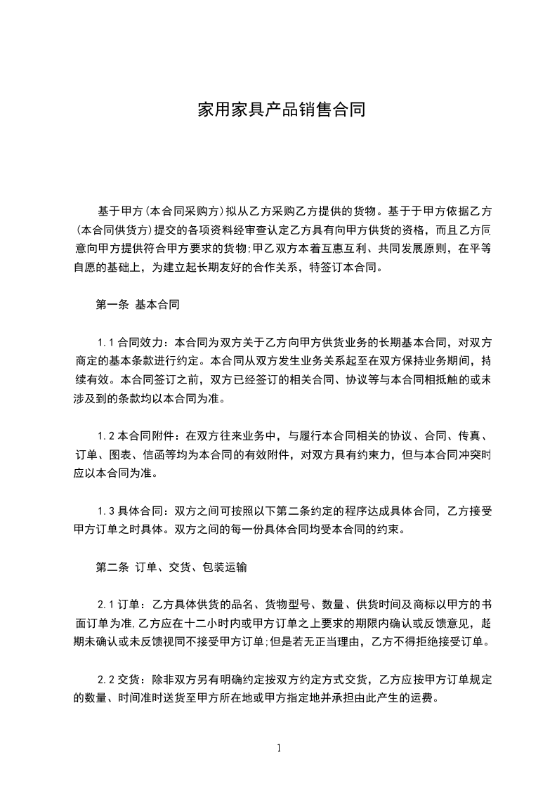 一、产品订货内容