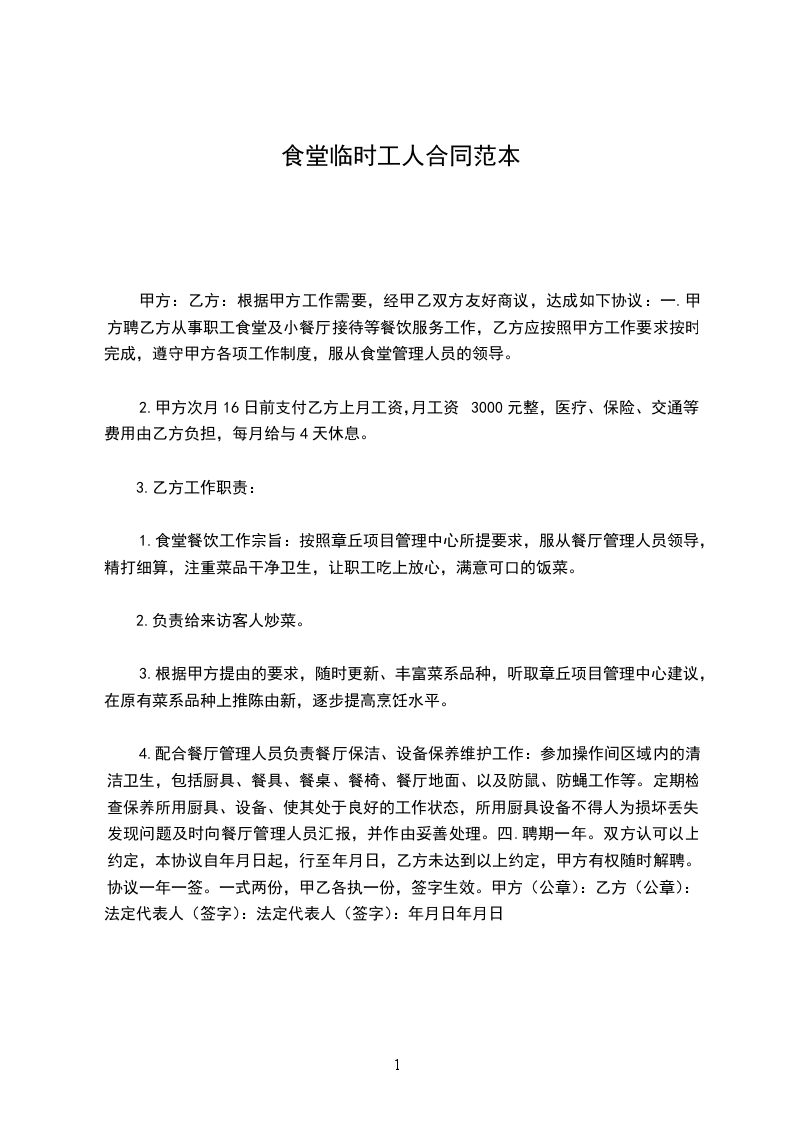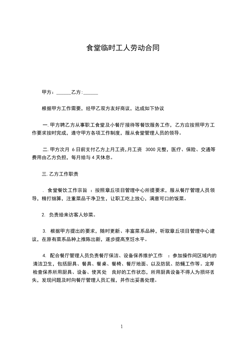 3、遵守劳动纪律,准时上下班,遵守食堂请假制度。