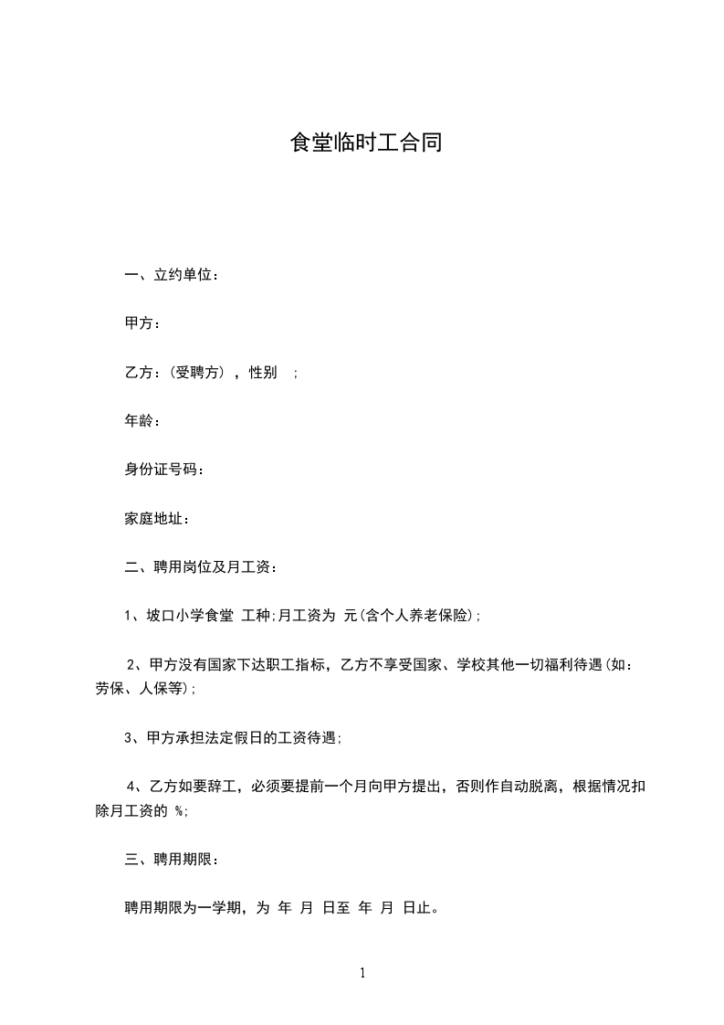 1、坡口小学食堂 工种;月工资为 元(含个人养老保险);