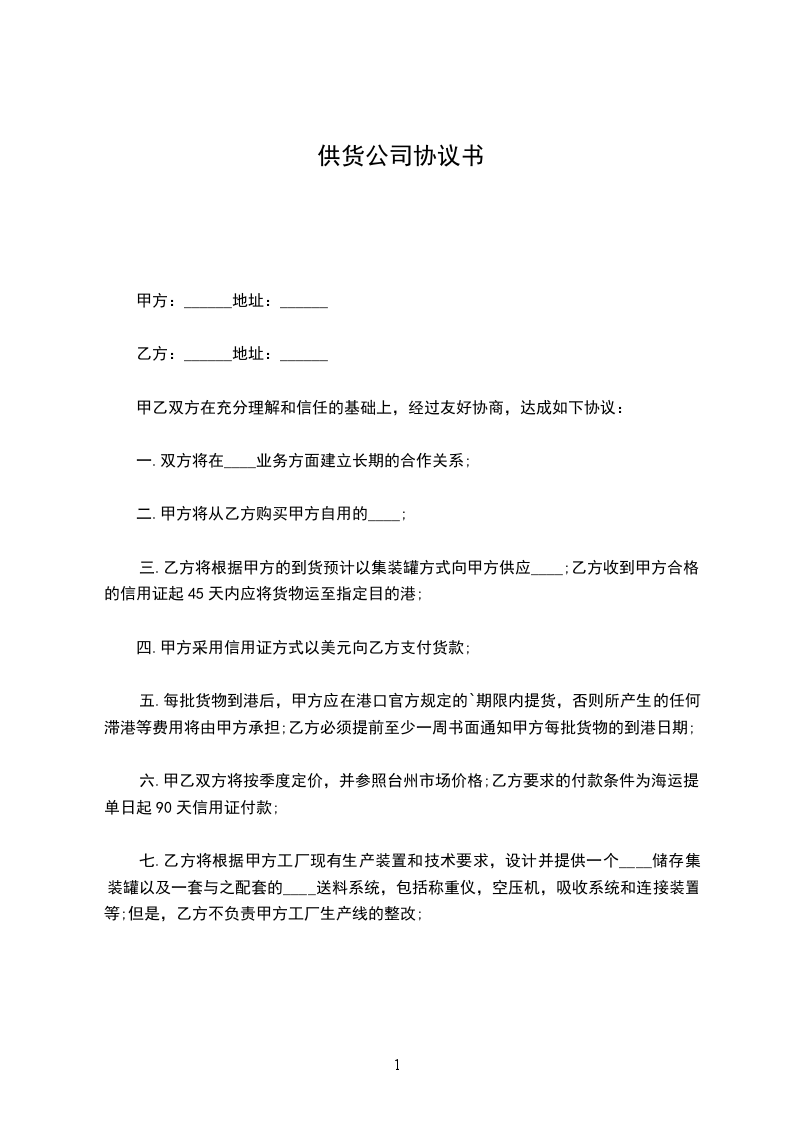经双方确定,合同条款如下: