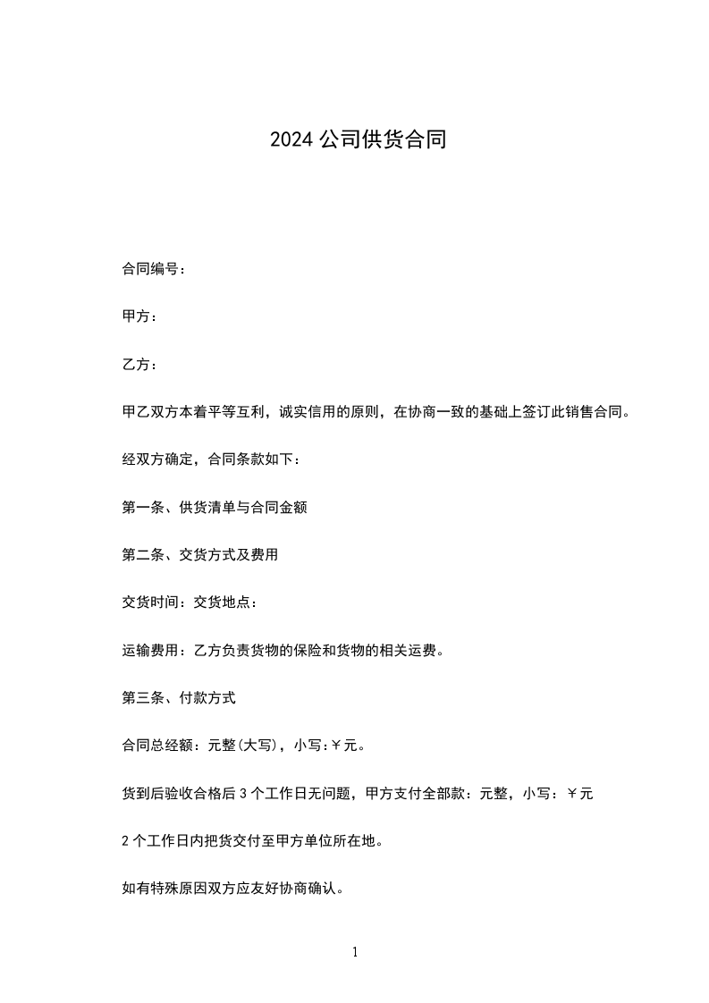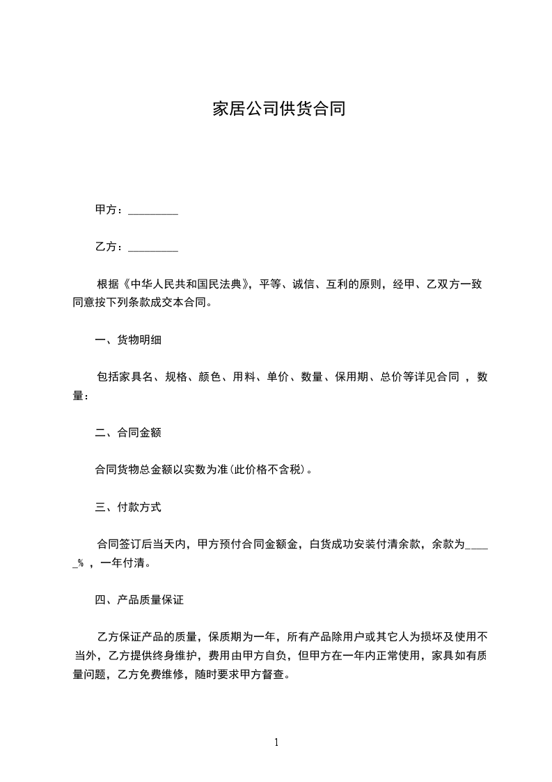 第一条、供货清单与合同金额
