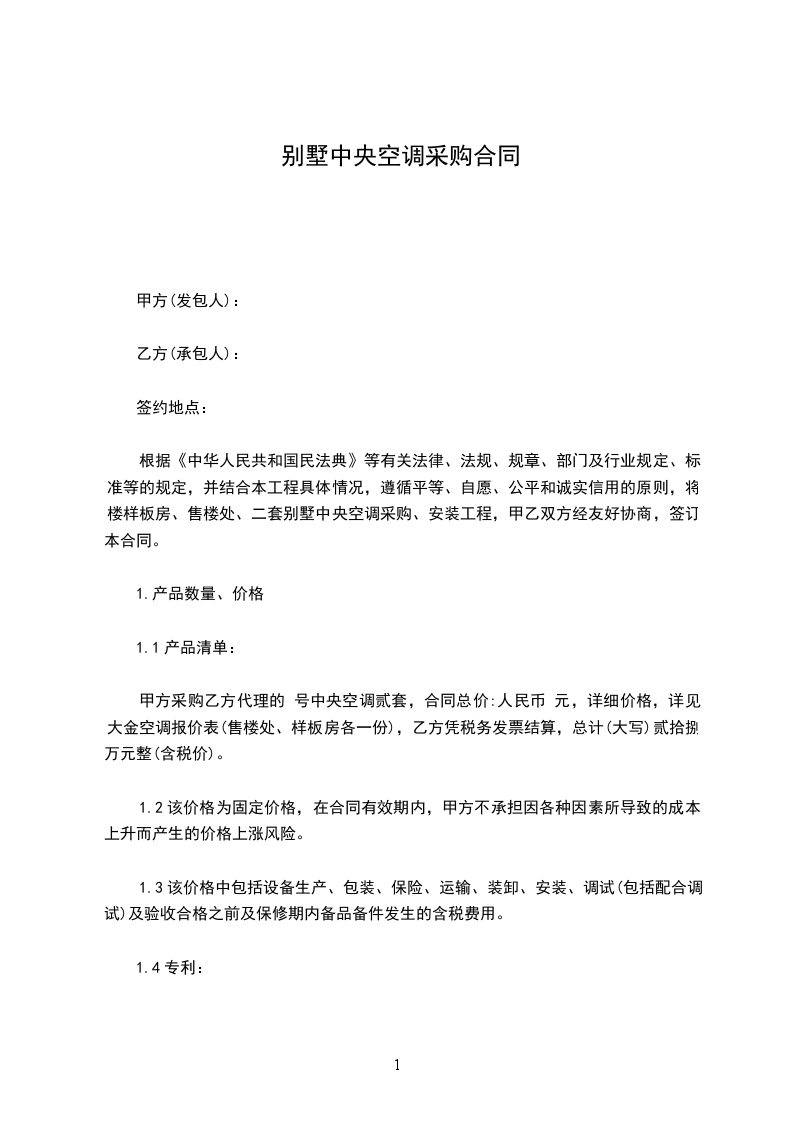 根据《中华人民共和国民法典》等有关法律、法规、规章、部门及行业规定、标准等的规定,并结合本工程具体情况,遵循平等、自愿、公平和诚实信用的原则,将 楼样板房、售楼处、二套别墅中央空调采购、安装工程,甲乙双方经友好协商,签订本合同。