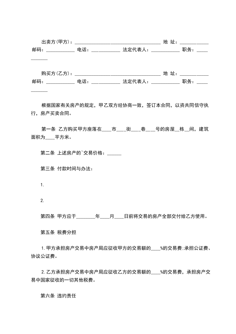 第八条甲方如不按合同规定的日期办理房产过户以及交付房屋,每逾期1天按房价的总额3‰计算违约金给与乙方。