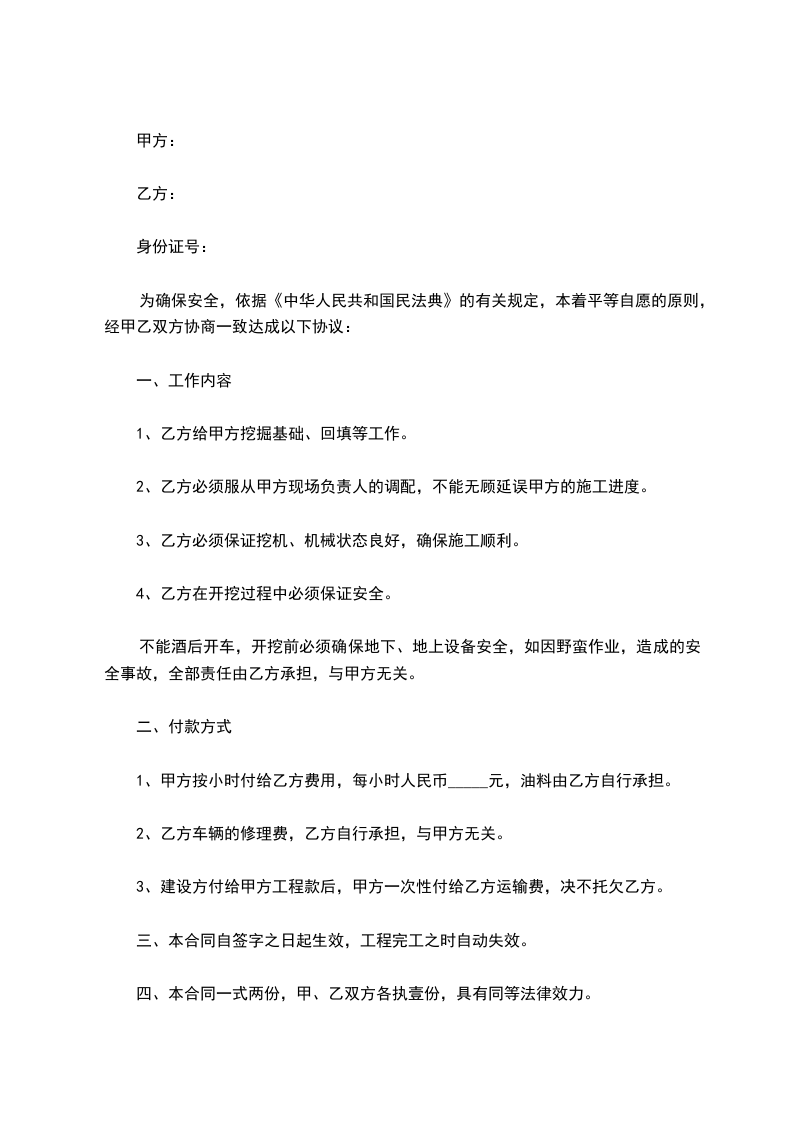 4、乙方在开挖过程中必须保证安全。