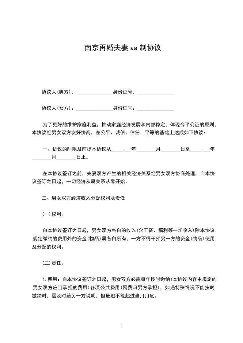 为了更好的维护家庭利益,推动家庭经济发展和内部稳定,体现合平公证的原则,本协议经男女双方友好协商,在公平、诚信、信任、平等的基础上达成如下协议: