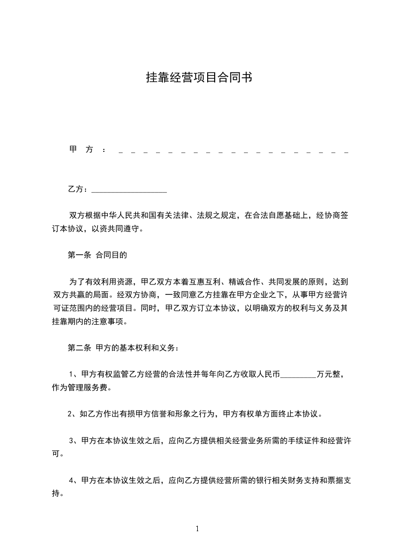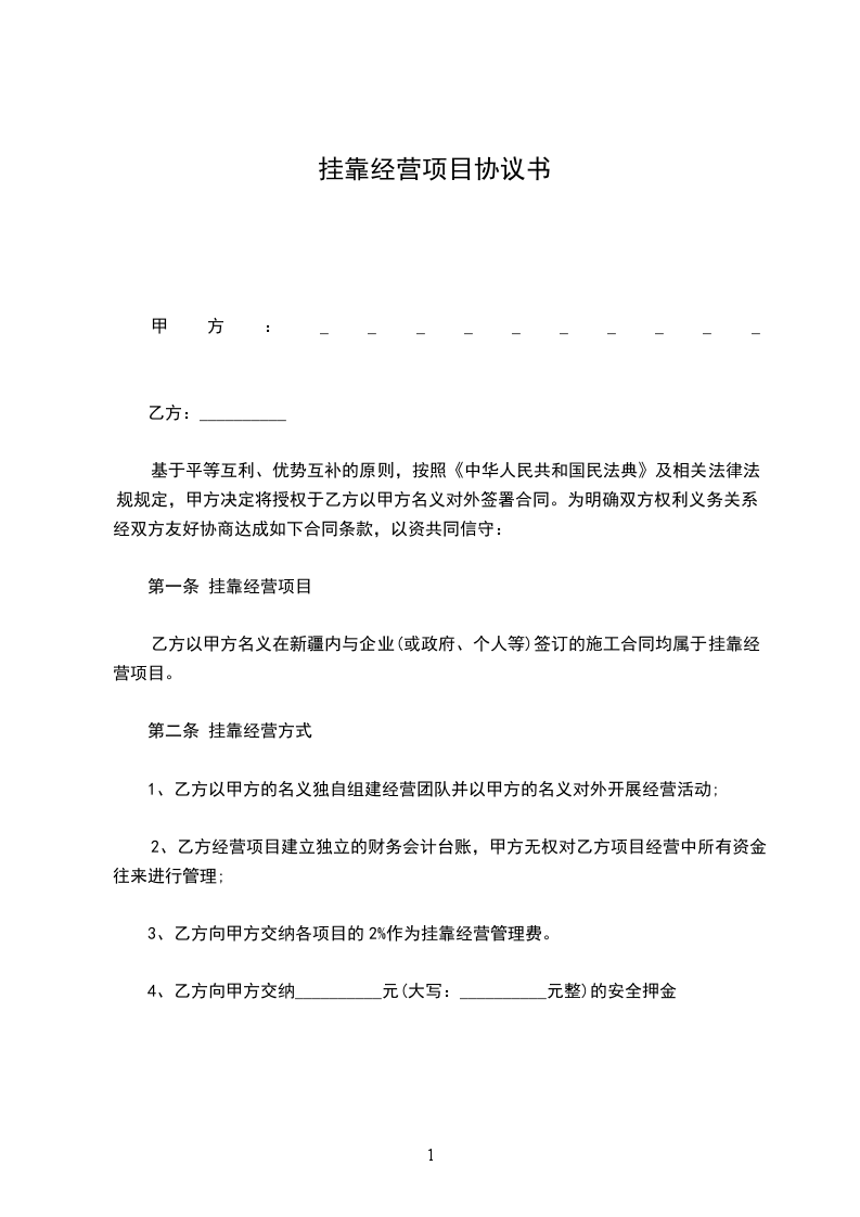 一、甲方同意乙方挂靠经营甲方下属项目经理部,乙方挂靠期间以甲方项目经理部名义自主经营、独立核算、自负盈亏。工程任务自行承揽。