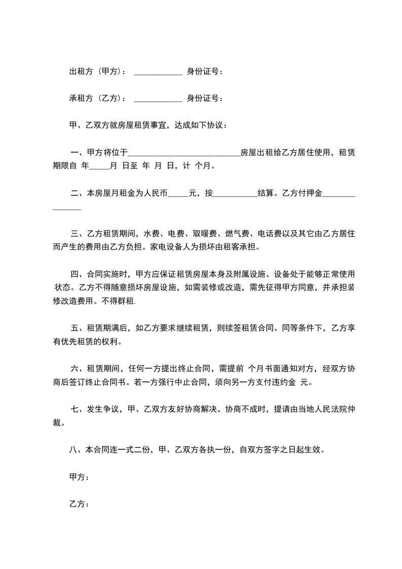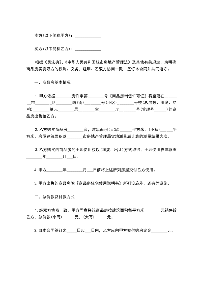 第二条房屋价格:该房屋房价为(人民币)________________元整;