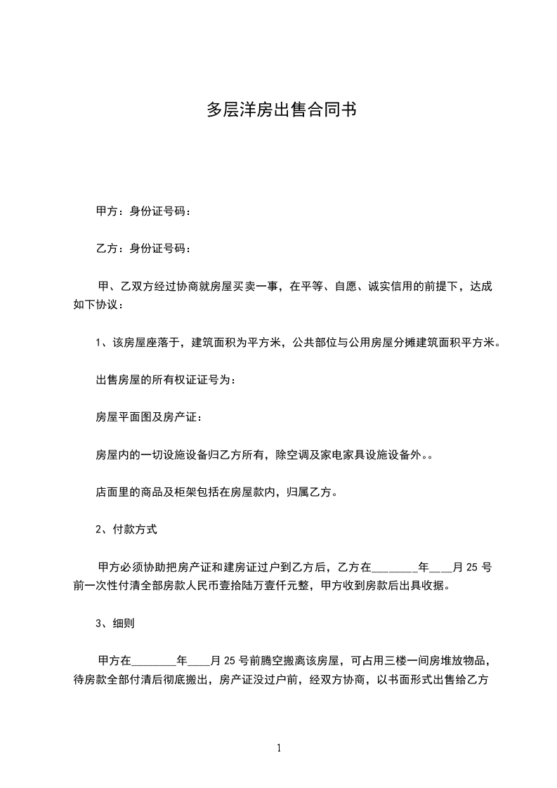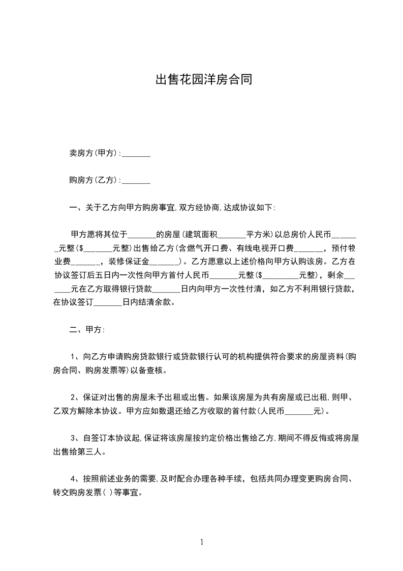 出卖方(甲方)_________________购买方(乙方)__________________