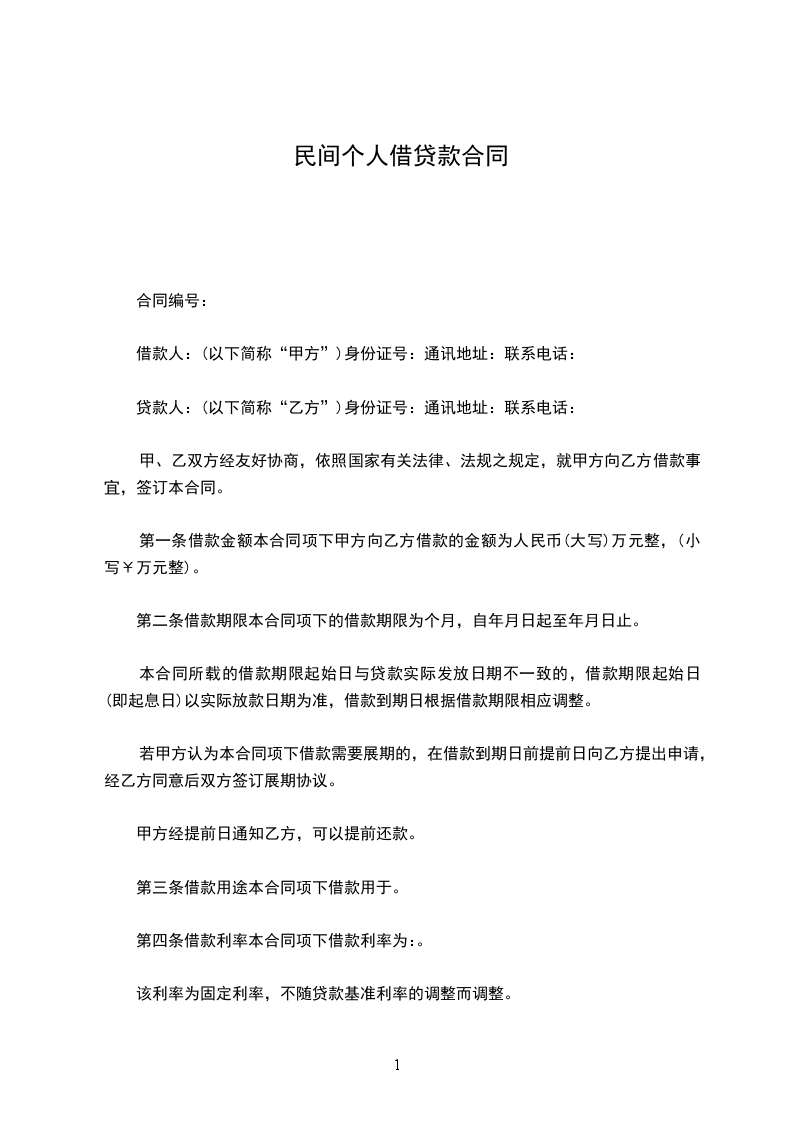 借款人:(以下简称“甲方”)身份证号:通讯地址:联系电话: