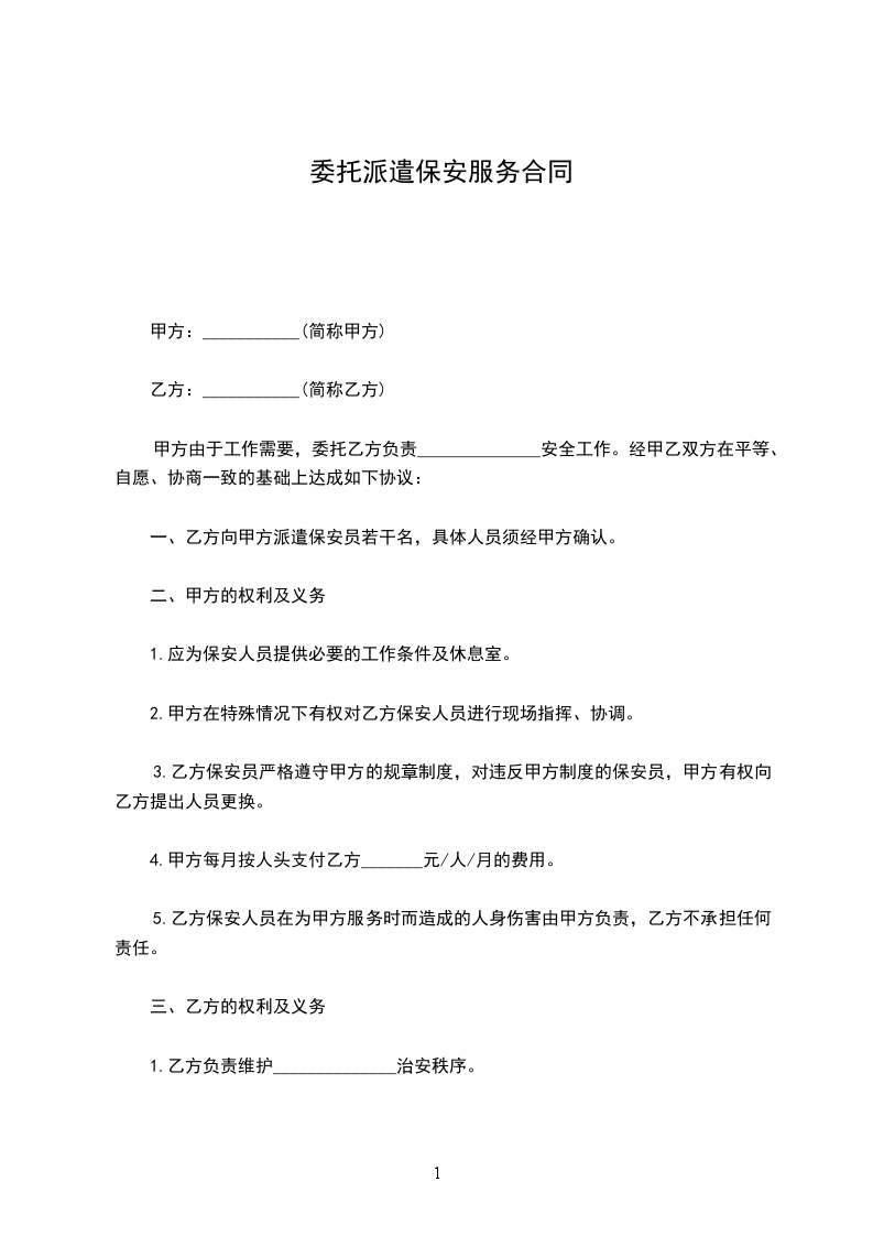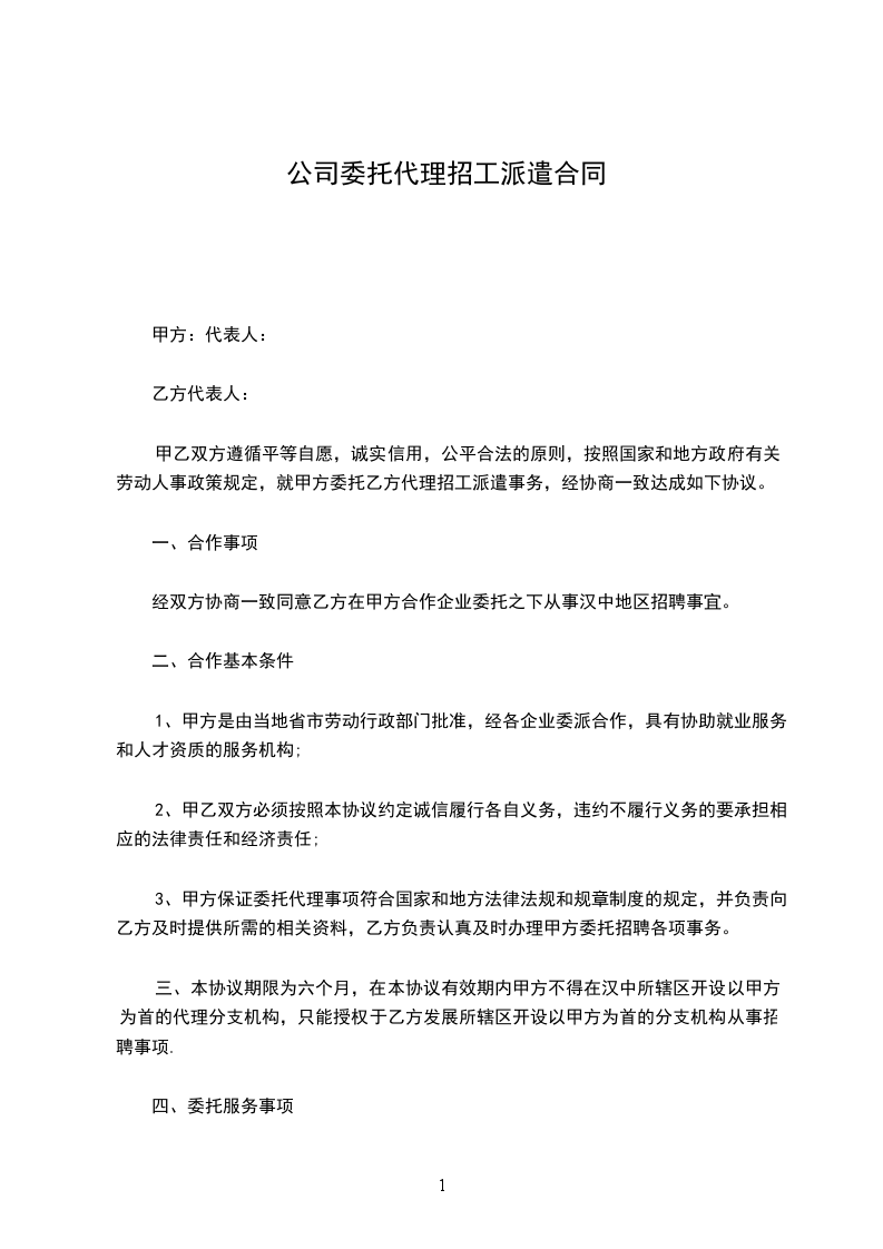 1.甲方要根据乙方的用工需求,_____天内提供合适人选供乙方考核,对乙方确定的用工对象,甲方在____天内办理好相关上岗手续。