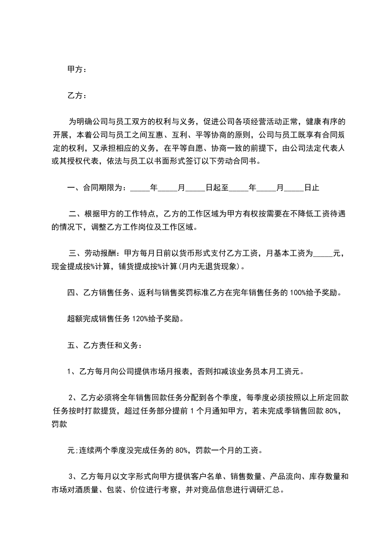 1、乙方每月向公司提供市场月报表,否则扣减该业务员本月工资元。