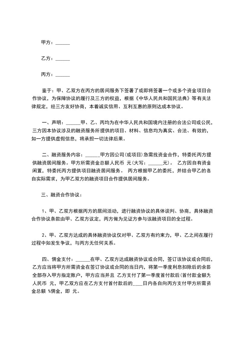 2、若乙方未能促成第三方与甲方签署出资合同,乙方无权要求甲方支付佣金或任何形式的居间费用。
