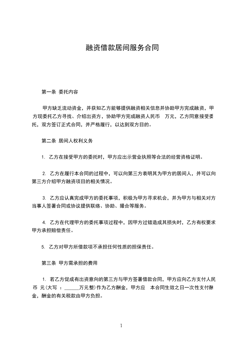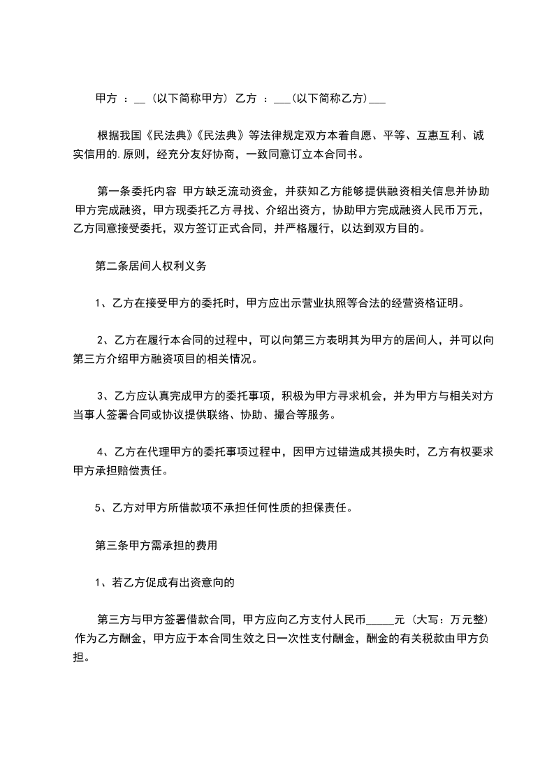 1、甲方委托乙方寻找或介绍出资方,乙方接受甲方委托。
