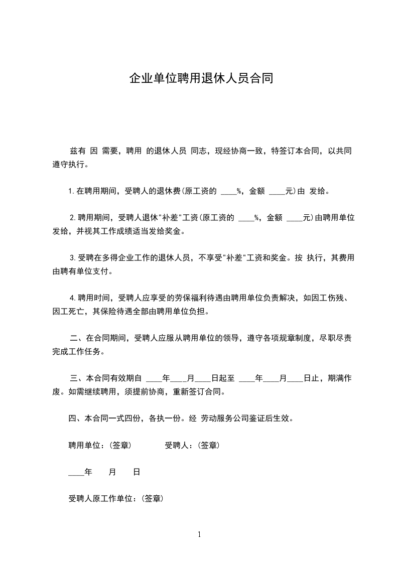 乙方(退休人员)姓名:联系电话:住所地:居民身份证号码: