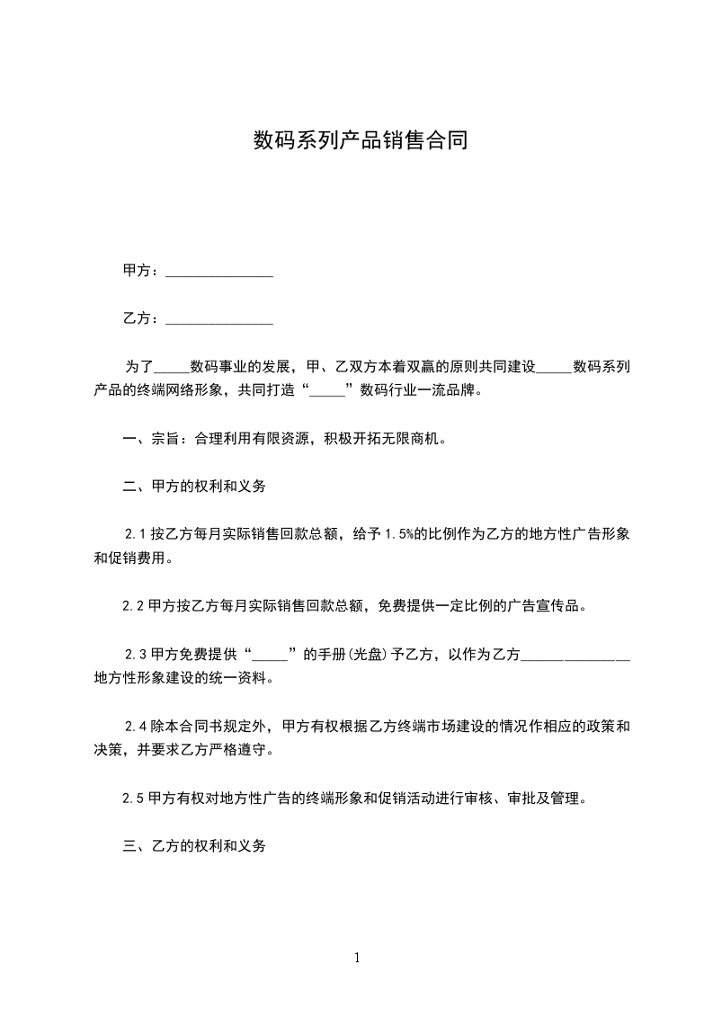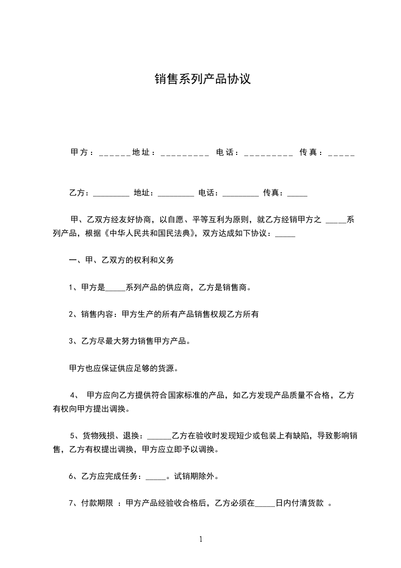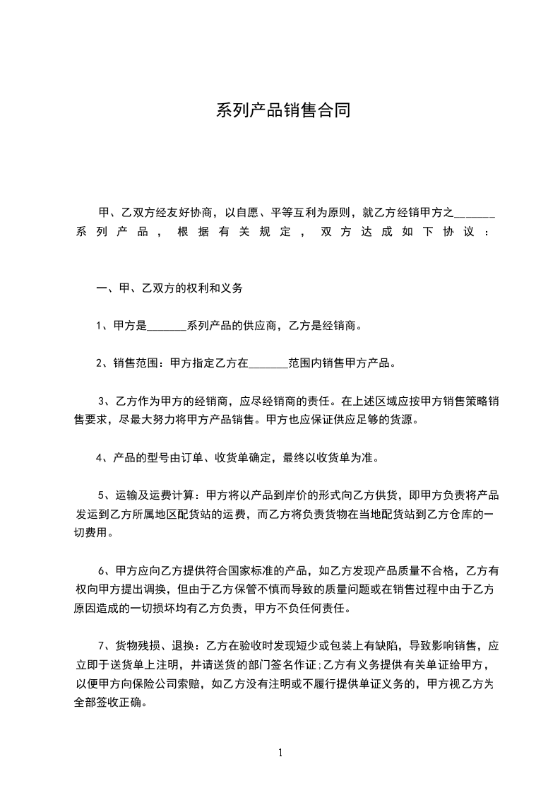 1、甲方是_______系列产品的供应商,乙方是经销商。