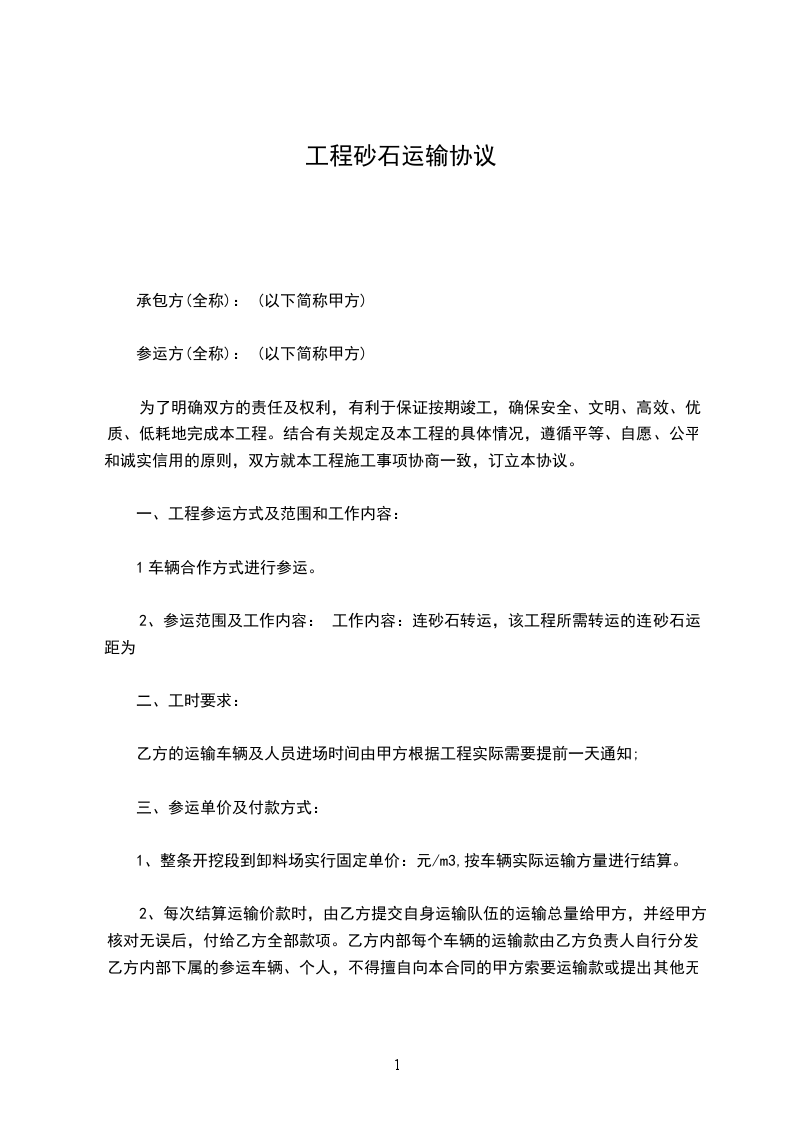 1、运输过程中乙方不得以任何理由要求甲方变更付款方式、运输单价、结算方法,否则甲方有权单方面终止合同。