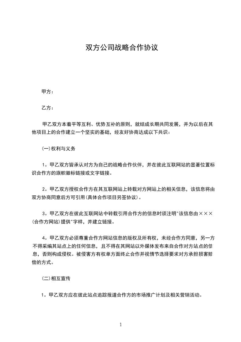 2。甲乙双方都认可的适当时间内,双方在彼此站点上开设专栏,撰写并宣传与合作对方商业行为有关的话题(具体合作项目另签协议)