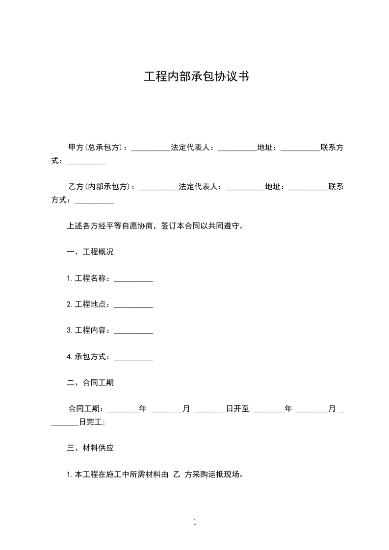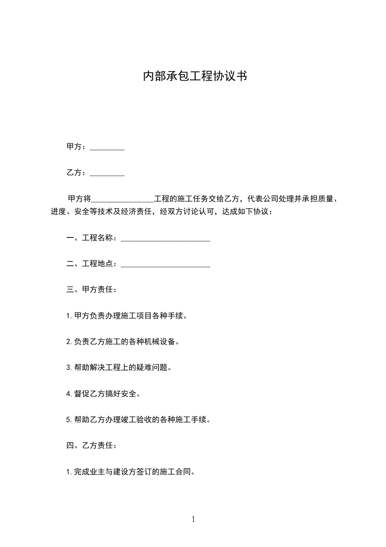 甲方将_________工程的施工任务交给乙方,代表公司处理并承担质量、进度、安全等技术及经济责任,经双方讨论认可,达成如下协议: