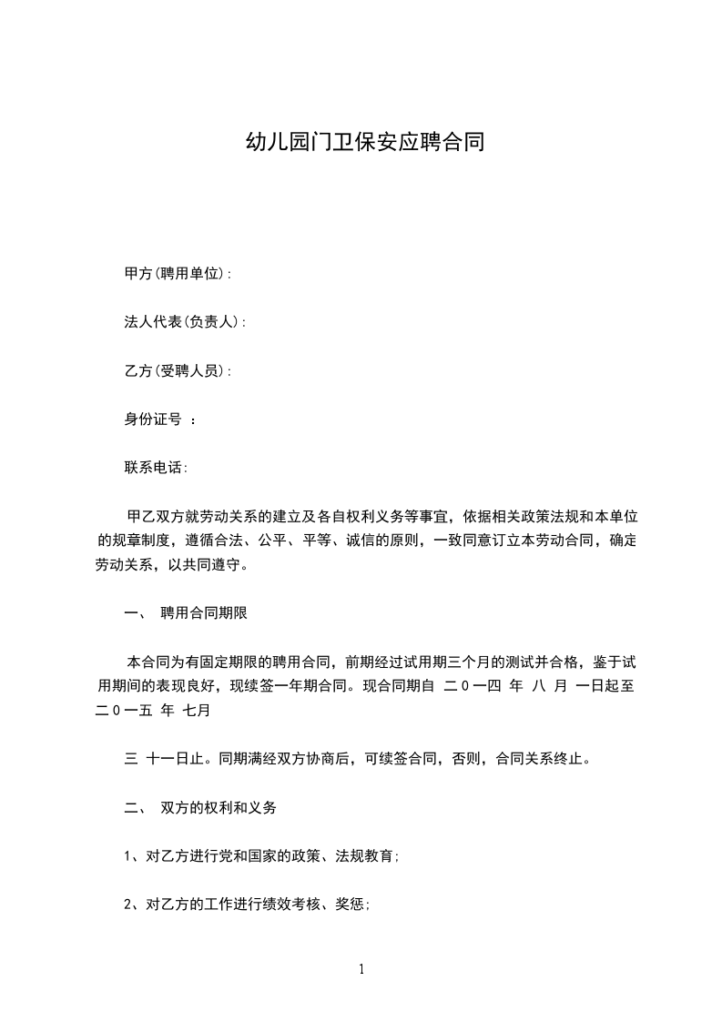 本合同为有固定期限的聘用合同,前期经过试用期三个月的测试并合格,鉴于试用期间的表现良好,现续签一年期合同。现合同期自 二0一四 年 八 月 一日起至 二0一五 年 七月
