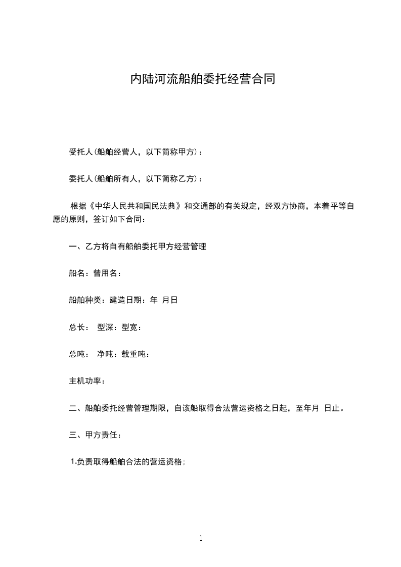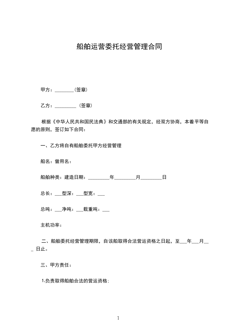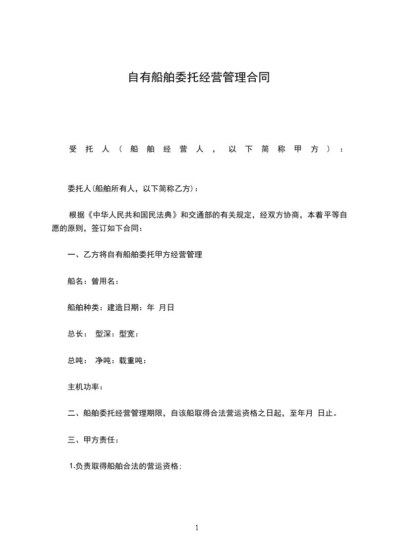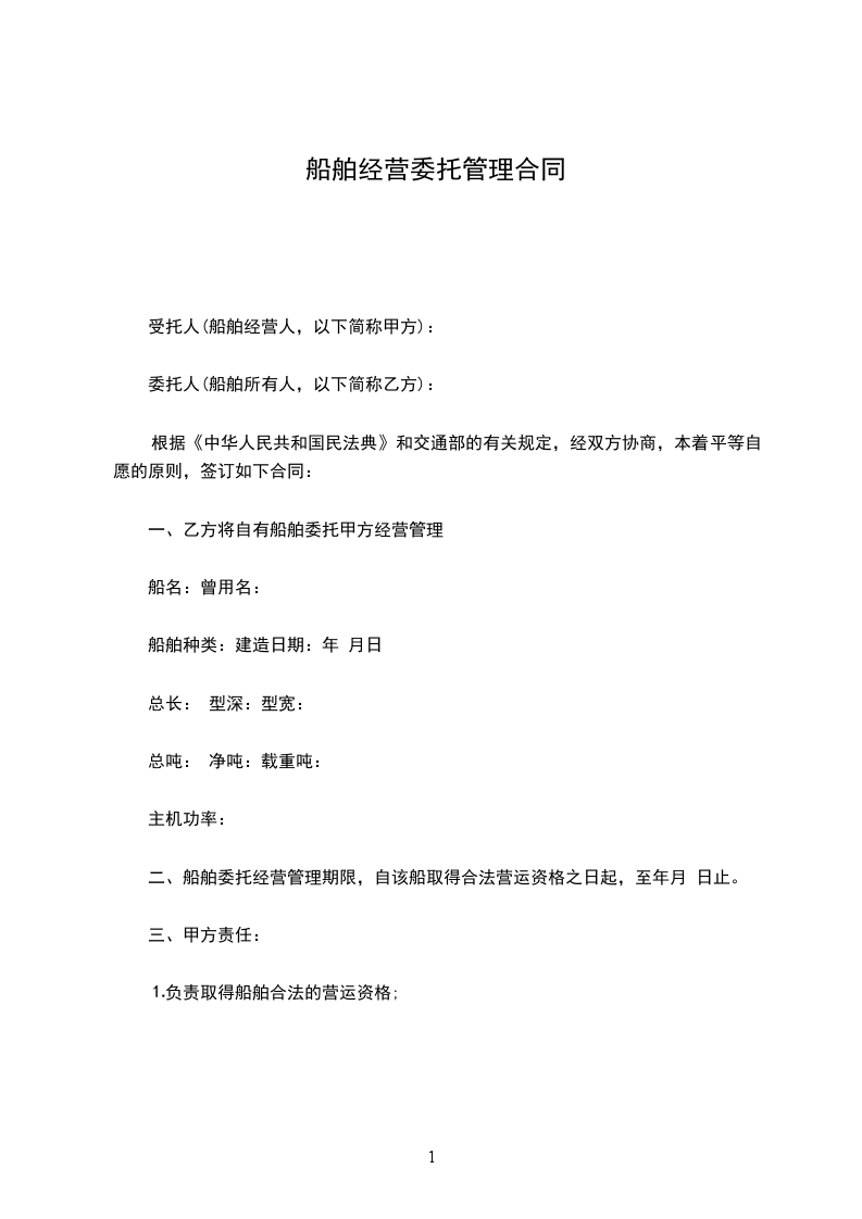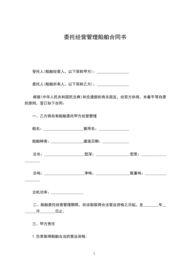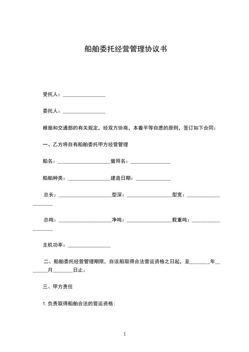 二、船舶委托经营管理期限,自该船取得合法营运资格之日起,至年月 日止。