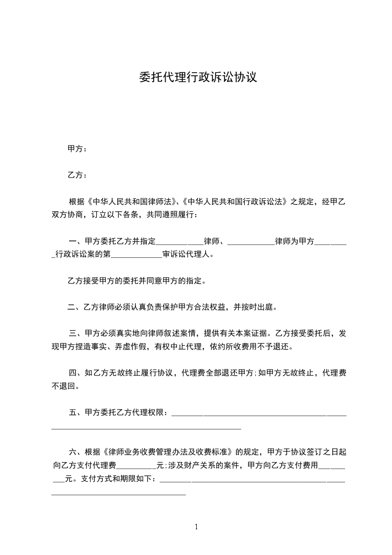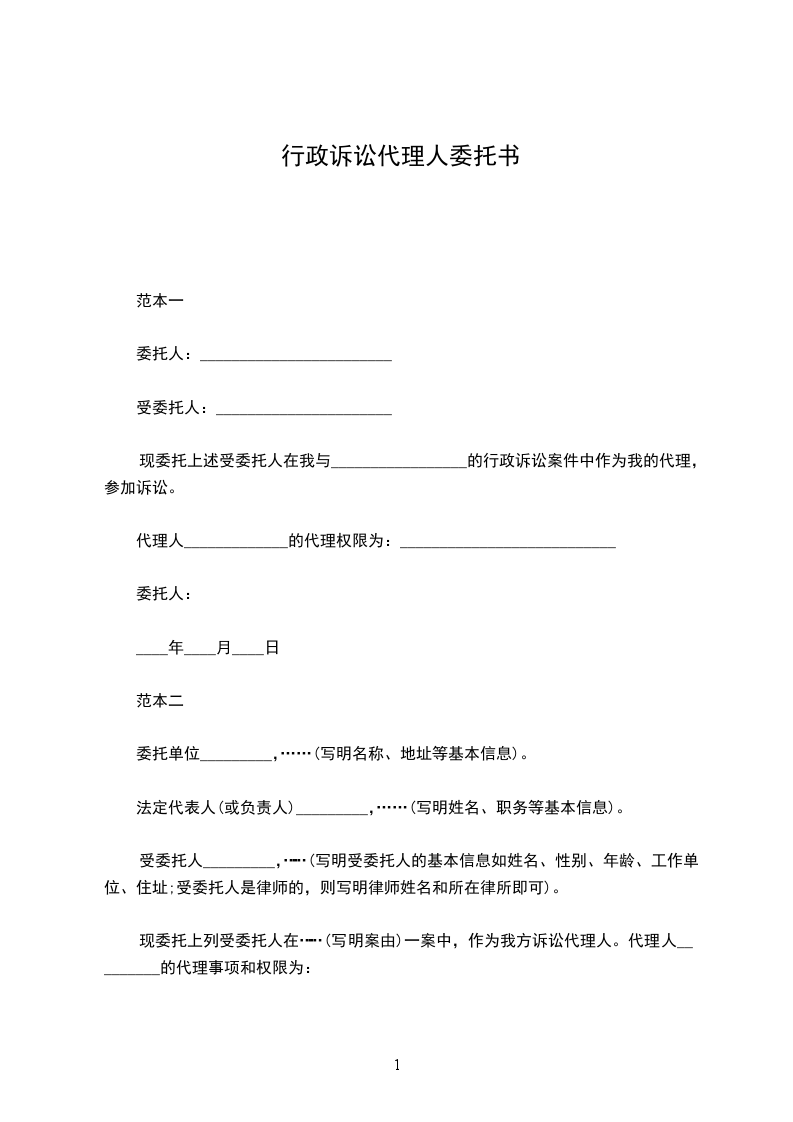一、甲方委托乙方并指定____________律师、____________律师为甲方_________行政诉讼案的第_____________审诉讼代理人。
