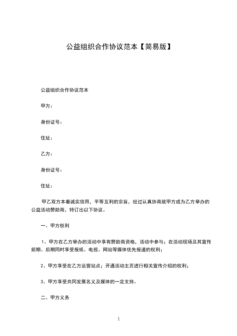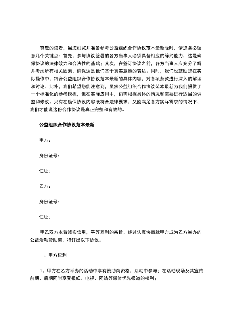 甲乙双方本着诚实信用,平等互利的宗旨,经过认真协商就甲方成为乙方举办的公益活动赞助商,特订出以下协议。