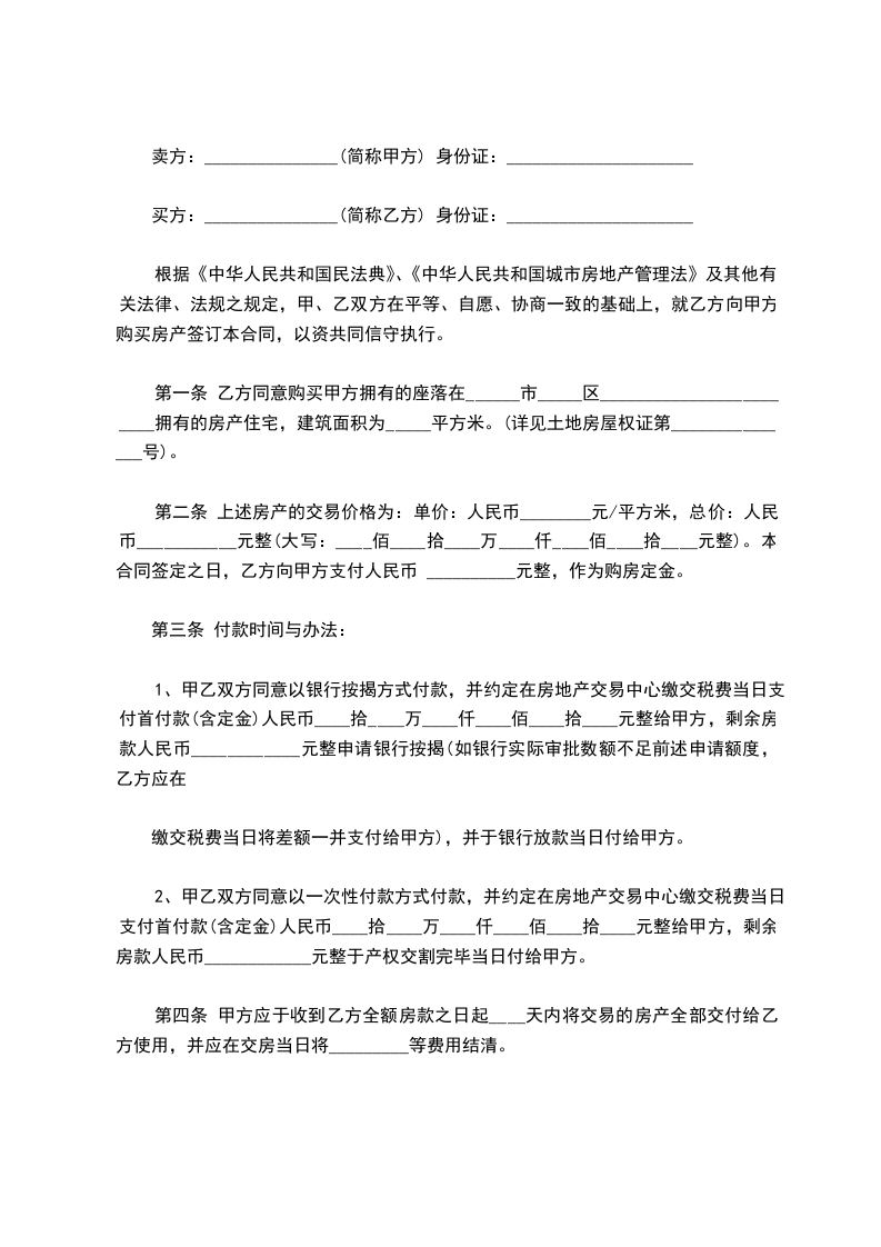 买房:______________身份证号码:____________________